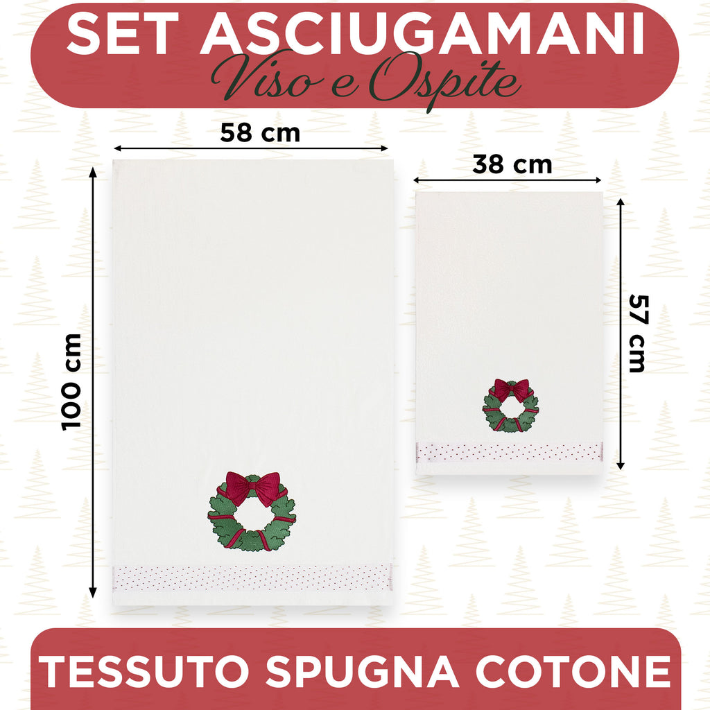 Asciugamani Natalizi Bagno set 1+1 in Spugna Cotone Decoro Ghirlanda Natale 7149