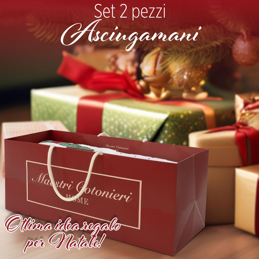 Porta la magia del Natale nel tuo bagno con il set asciugamani 1+1 in spugna di cotone, impreziosito da ricami eleganti a tema ghirlanda natalizia. Un dettaglio raffinato che aggiunge calore e atmosfera alle feste.