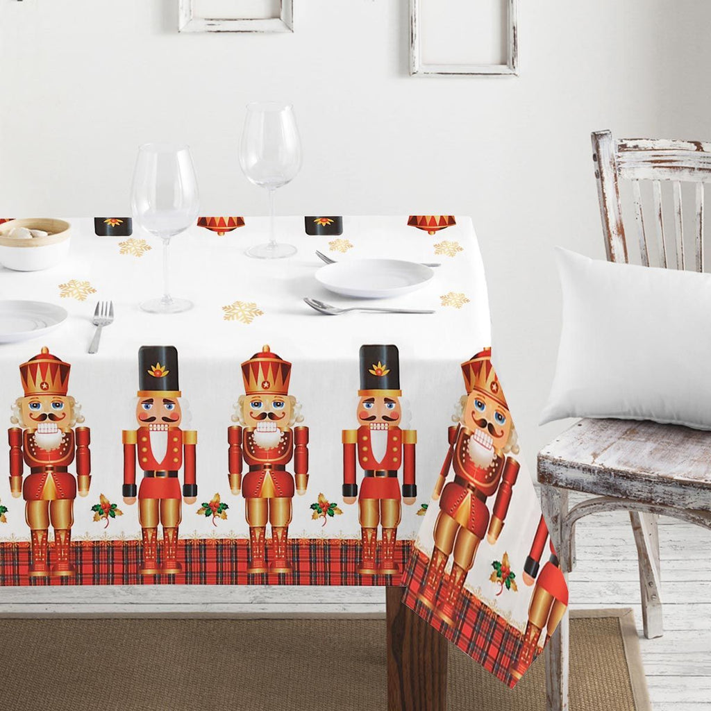 Weihnachtstischdecke von Maestri Cotonieri mit Nussknacker-Aufdruck.