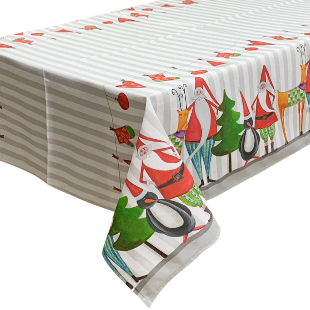 Maestri Cotonieri Weihnachtstischdecke mit Weihnachtsmann-, Rentier- und Dekorationsdruck.