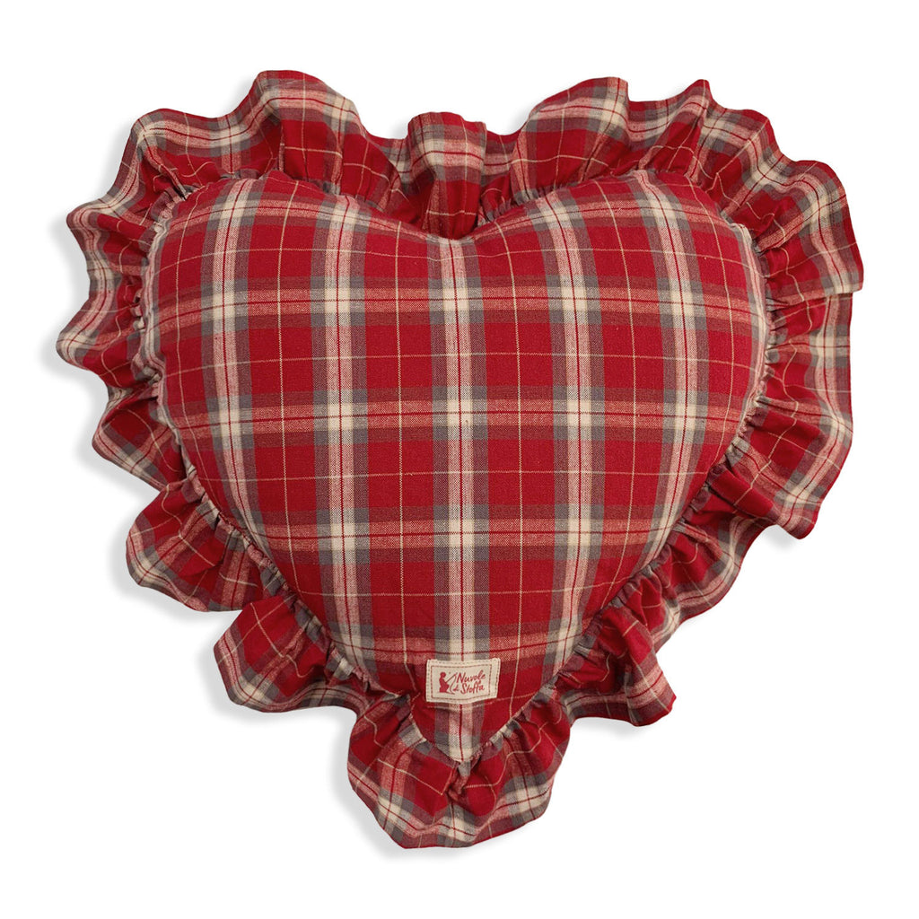 Herzförmiges weihnachtliches Dekokissen mit Volant mit Tartan-Motiv, komplett aus reiner Baumwolle, Bonnie-Kollektion.