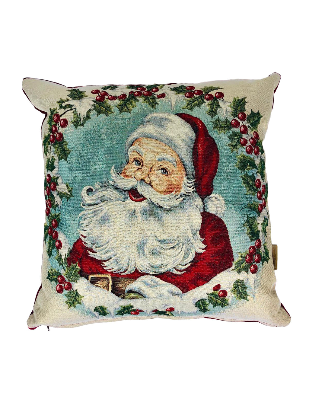 Weihnachtskissen mit Weihnachtsmann-Aufdruck.