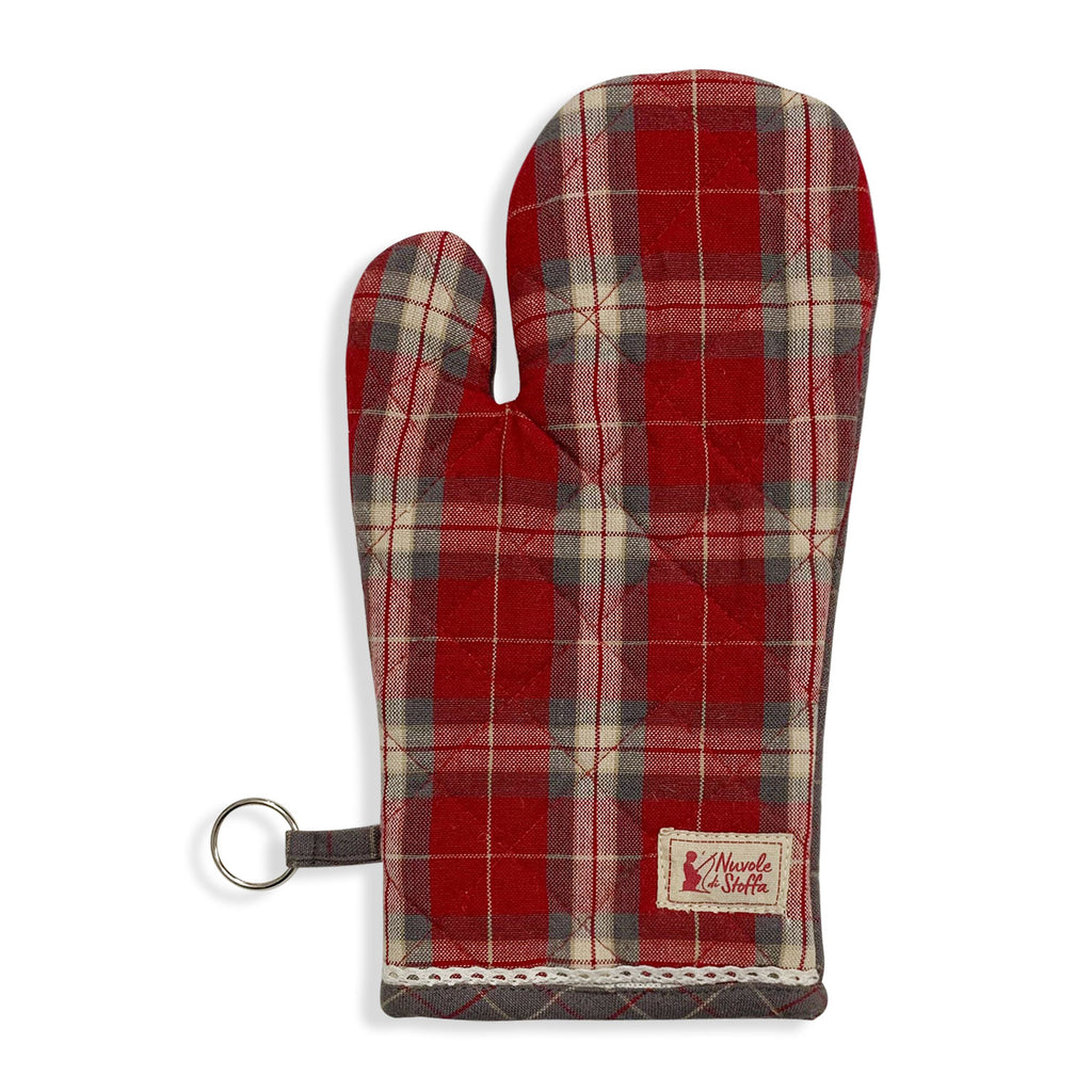 Weihnachts-Ofenhandschuh aus der Bonnie-Kollektion mit Dekorationen und Schottenmuster aus reiner Baumwolle mit Haken aus Stoff und Metall, ideal zum Aufhängen.