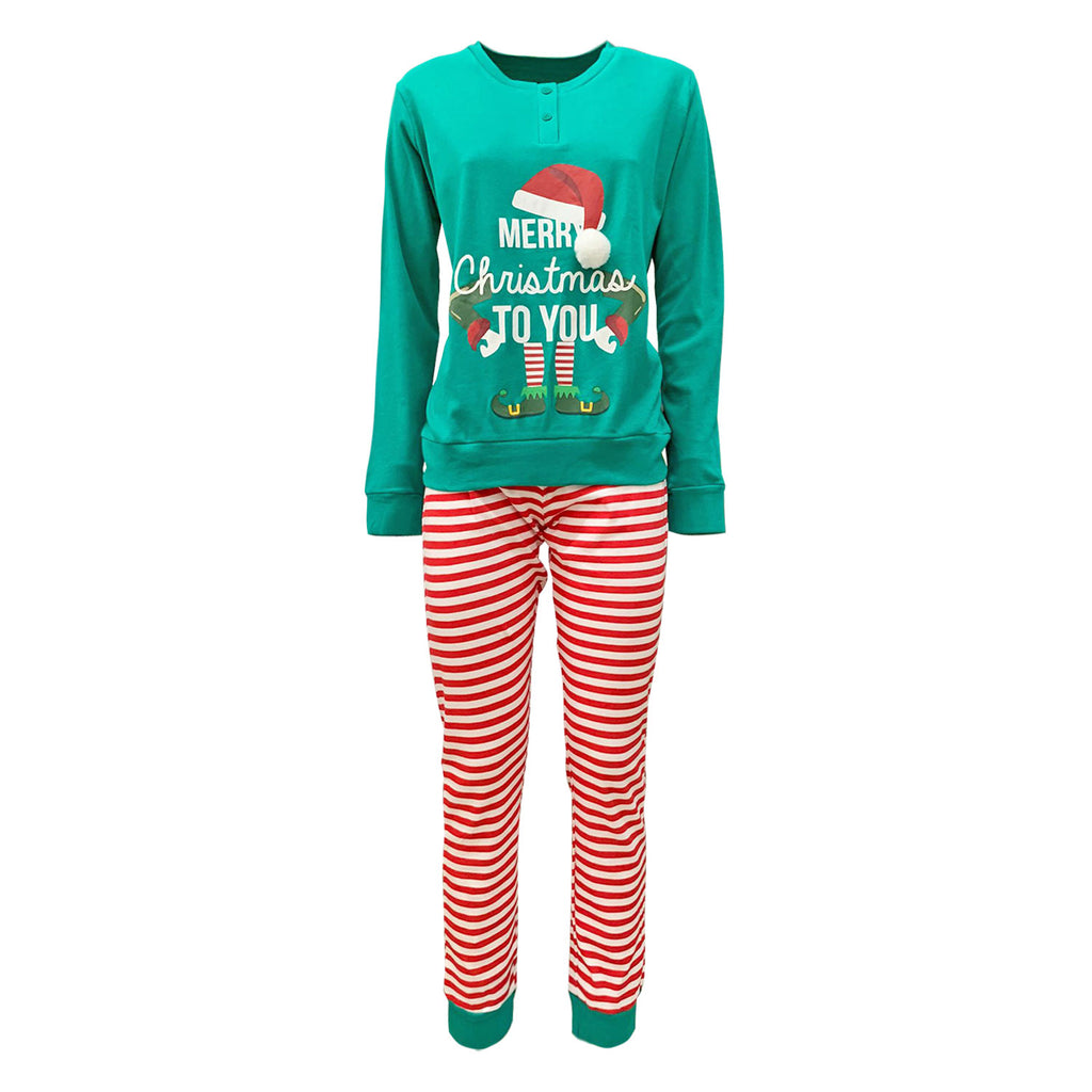 Langer Damen-Weihnachtspyjama für Mädchen Weihnachten Elfo warme Baumwolle Oronero 5780