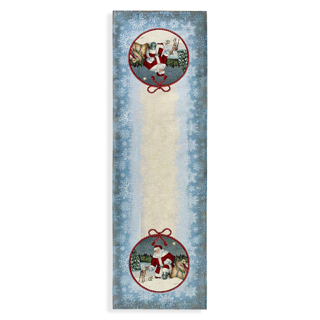 Läufer aus Gobelinstoff mit weihnachtlichem Glitzer von Maestri Cotonieri mit Weihnachtsmannmuster.