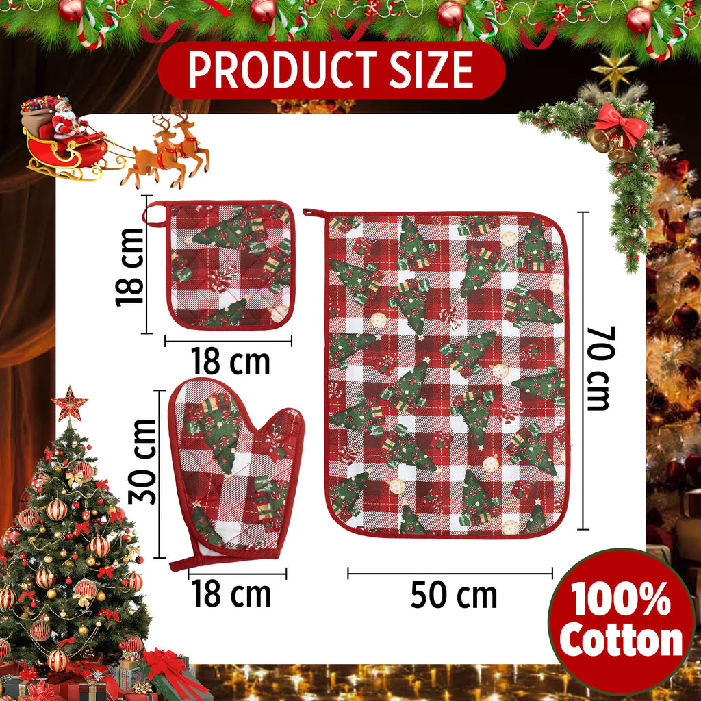 Weihnachtliches Set aus Ofenhandschuh, Topflappen und Geschirrtuch – Weihnachtsgeschenk-Idee 6484