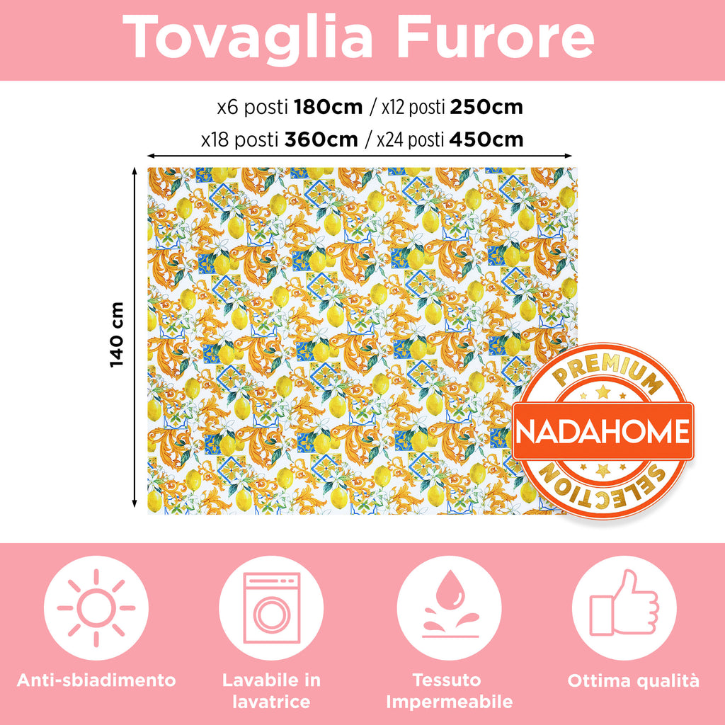 Fleckabweisende Tischdecke, wasserdichte Tischdecke, Vietri Zitronen, verschiedene Größen 7086