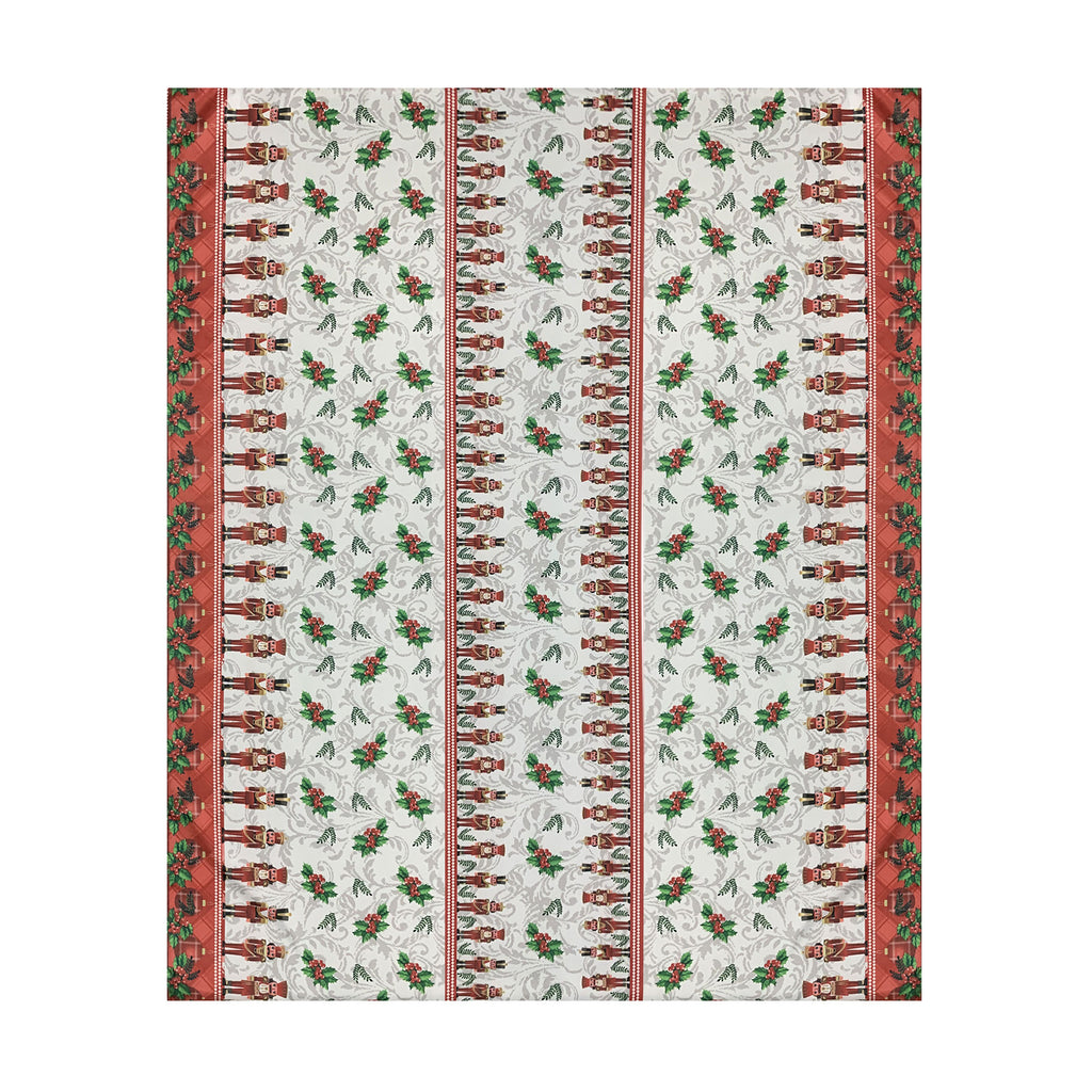 Die 135 x 170 cm große Tischdecke besteht aus strapazierfähigem Polyestergewebe und ist somit perfekt für den täglichen Gebrauch geeignet. Der Aufdruck mit Weihnachts- und Nussknackermotiven verleiht der Umgebung eine festliche Note.