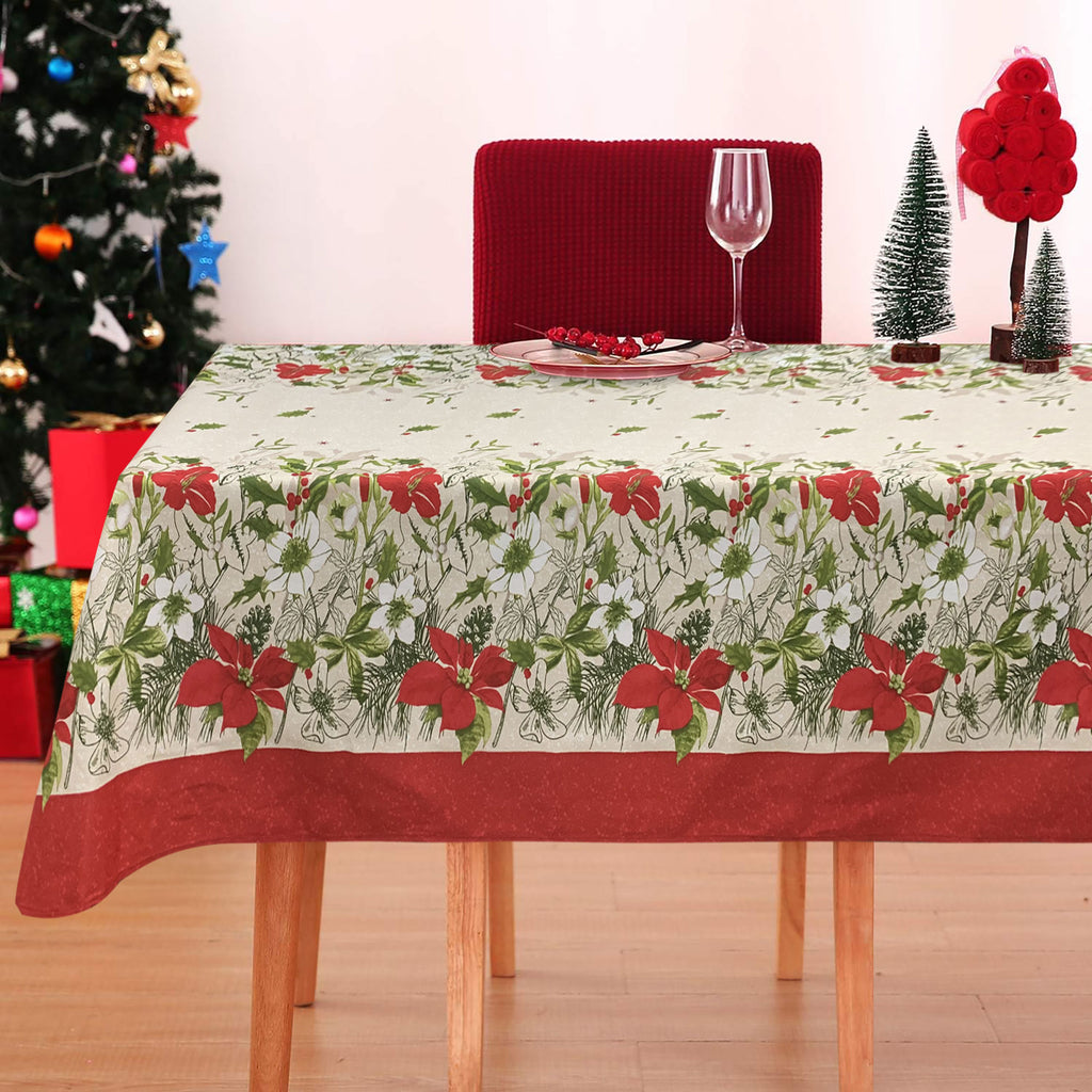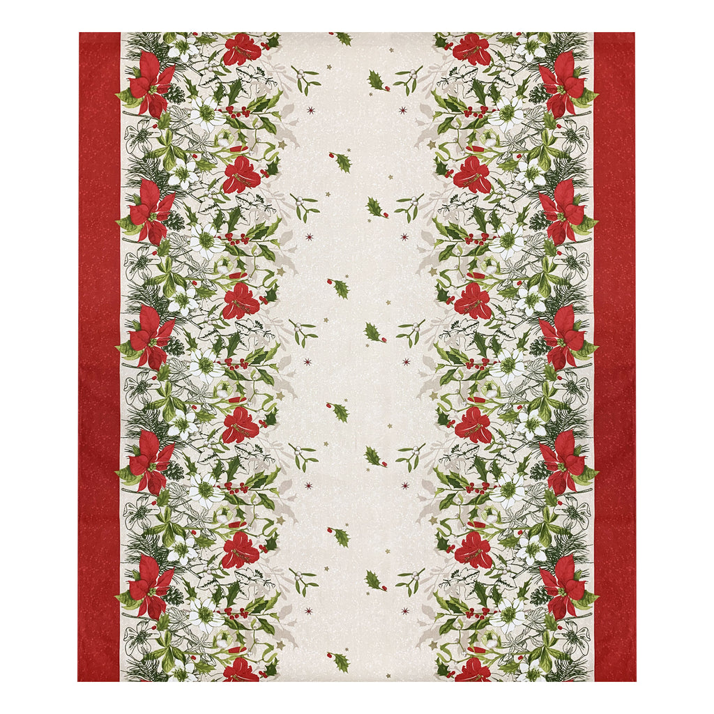 Die 140 x 180 cm große Tischdecke besteht aus strapazierfähigem, bedrucktem Panama mit einer Webart von 180 g/m² und ist somit perfekt für den täglichen Gebrauch geeignet. Der weihnachtliche Motivdruck verleiht dem Ambiente eine festliche Note.