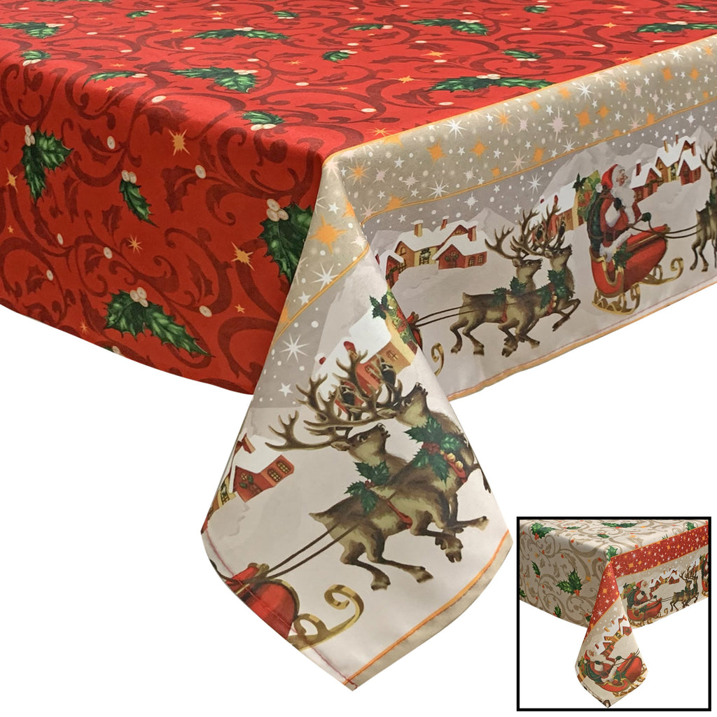 Die 135 x 170 cm große Tischdecke besteht aus strapazierfähigem Polyestergewebe und ist somit perfekt für den täglichen Gebrauch geeignet. Der weihnachtliche Motivdruck verleiht dem Ambiente eine festliche Note.