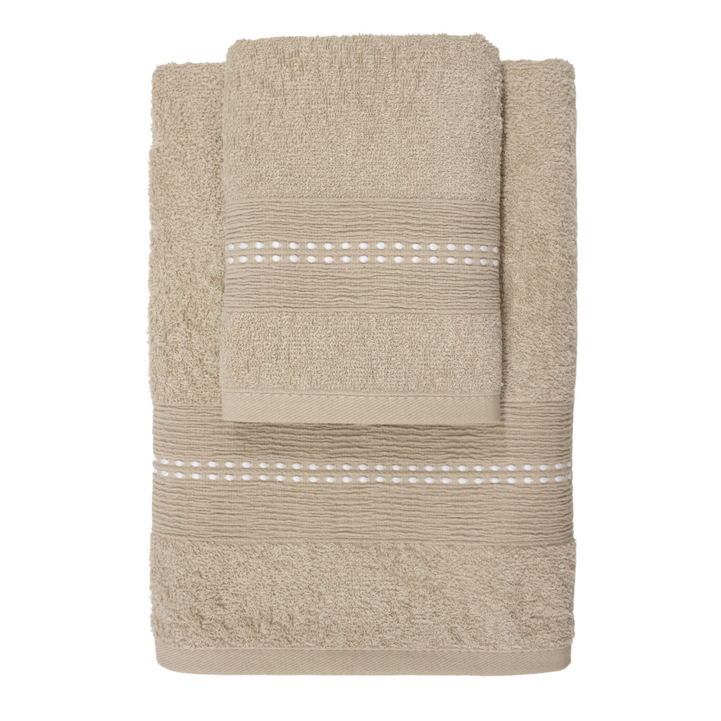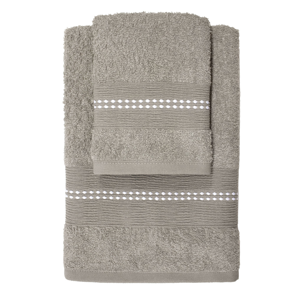 The set is embellished with an elegant worked edge that adds a chic and distinctive detail. Available in a huge variety of colors, you can easily match these towels to any bathroom decor style, from classic to modern.