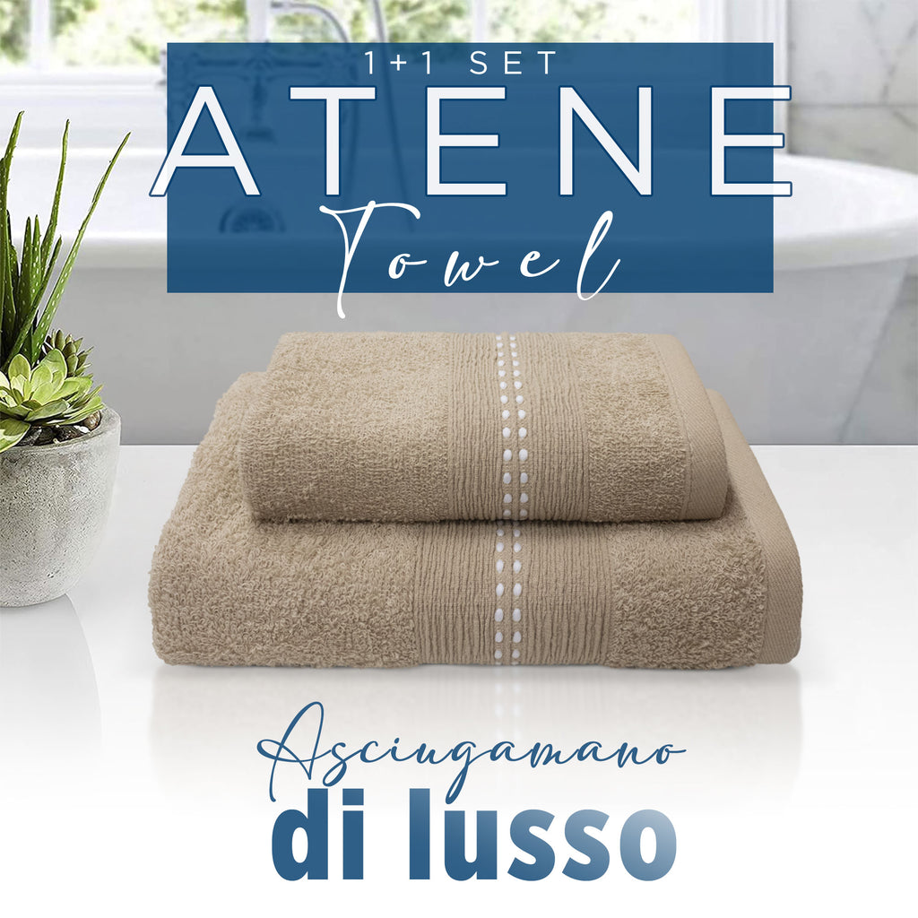 Discover our elegant 1+1 Bathroom Towel Set, consisting of a face towel and a guest towel, perfect for enriching your bathroom with a touch of refinement. Made of soft 300g/m2 hydrosponge, these towels guarantee a pleasant feeling of comfort and high absorbency, making them ideal for daily use.