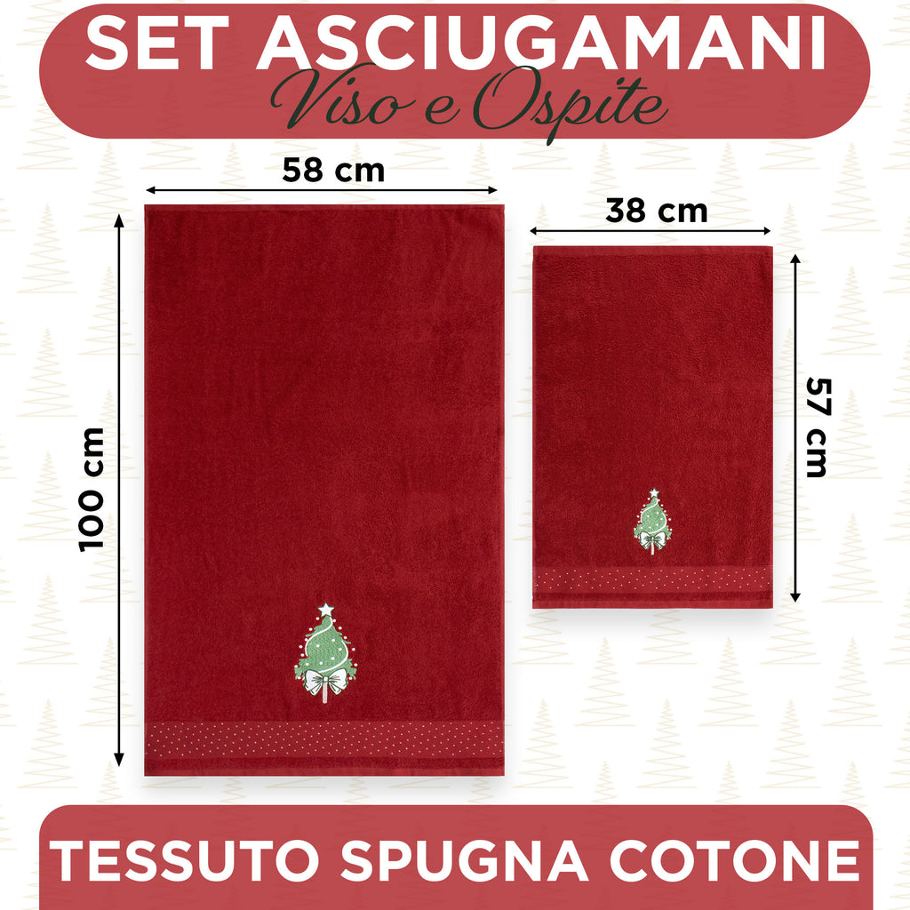Christmas Bath Towels Set 1+1 in Cotton Sponge Christmas Fir Tree Decoration 7148