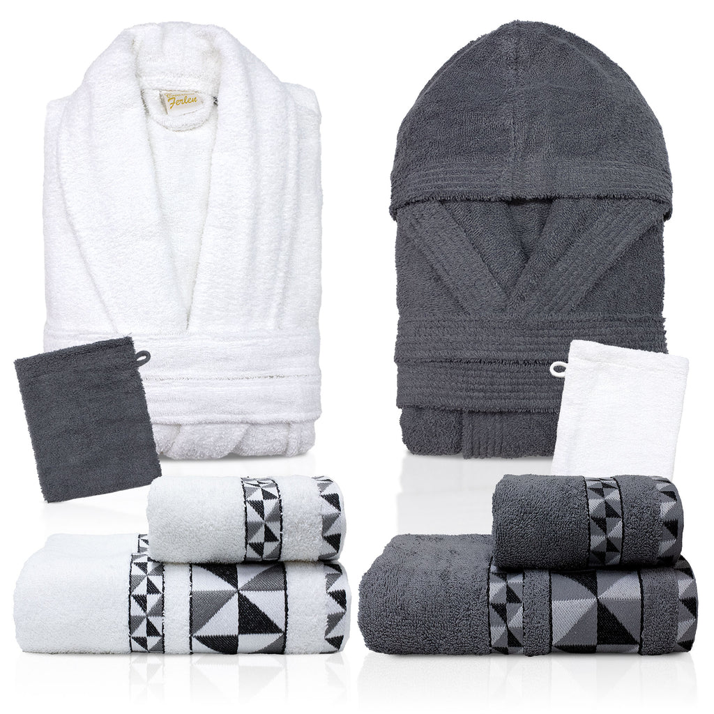 Completo bagno asciugamani accappatoi set uomo donna in spugna di cotone 7156
