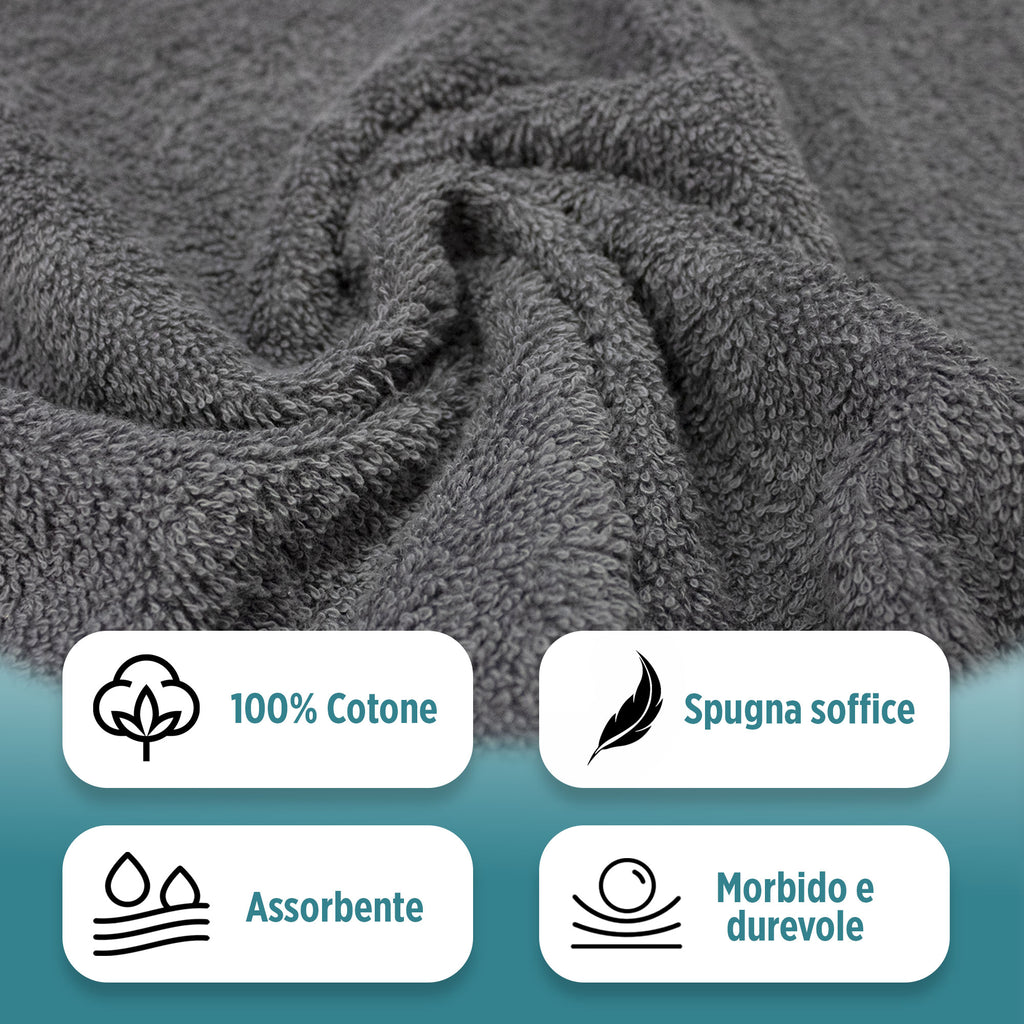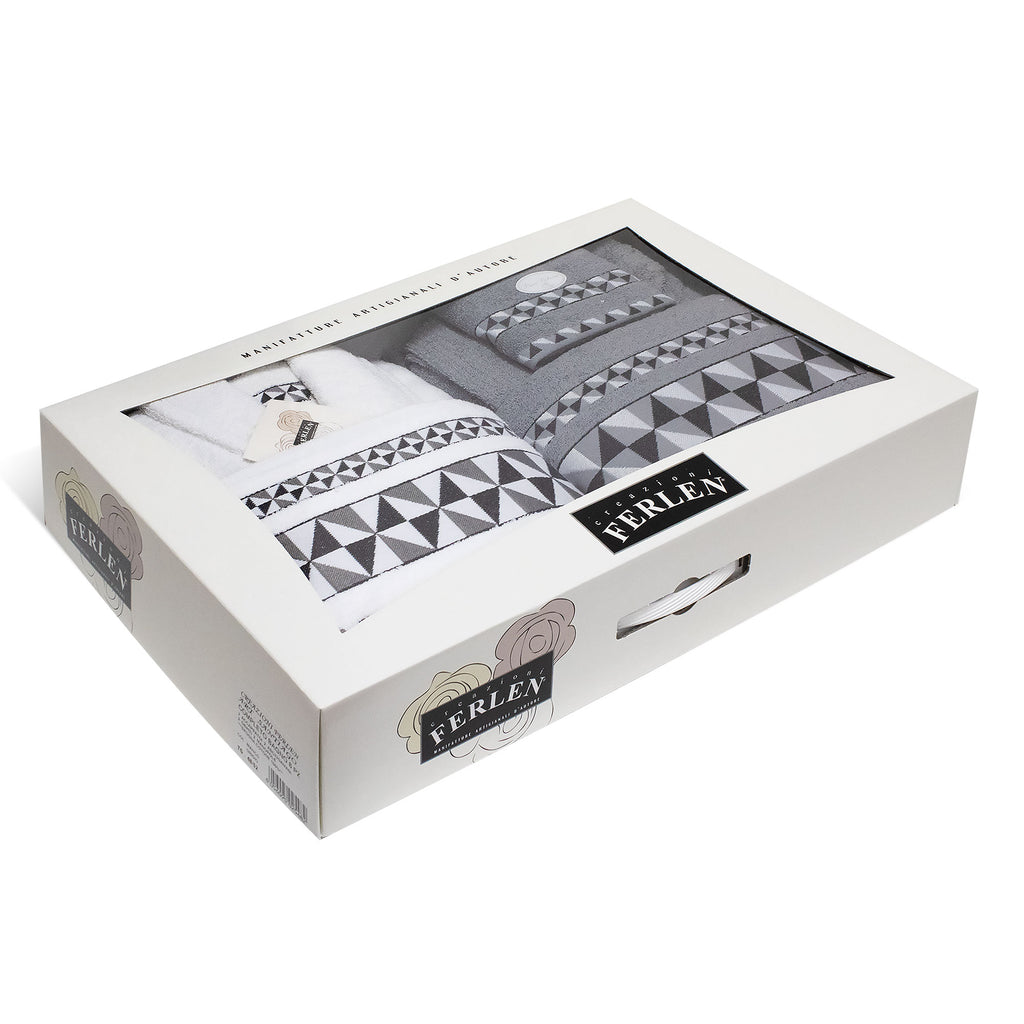 • Dimensioni: 2 Accappatoi taglia unica, 2 Asciugamani viso 50x105cm, 2 Asciugamani Ospiti 35x55cm, 2 Manopole 15x20cm.