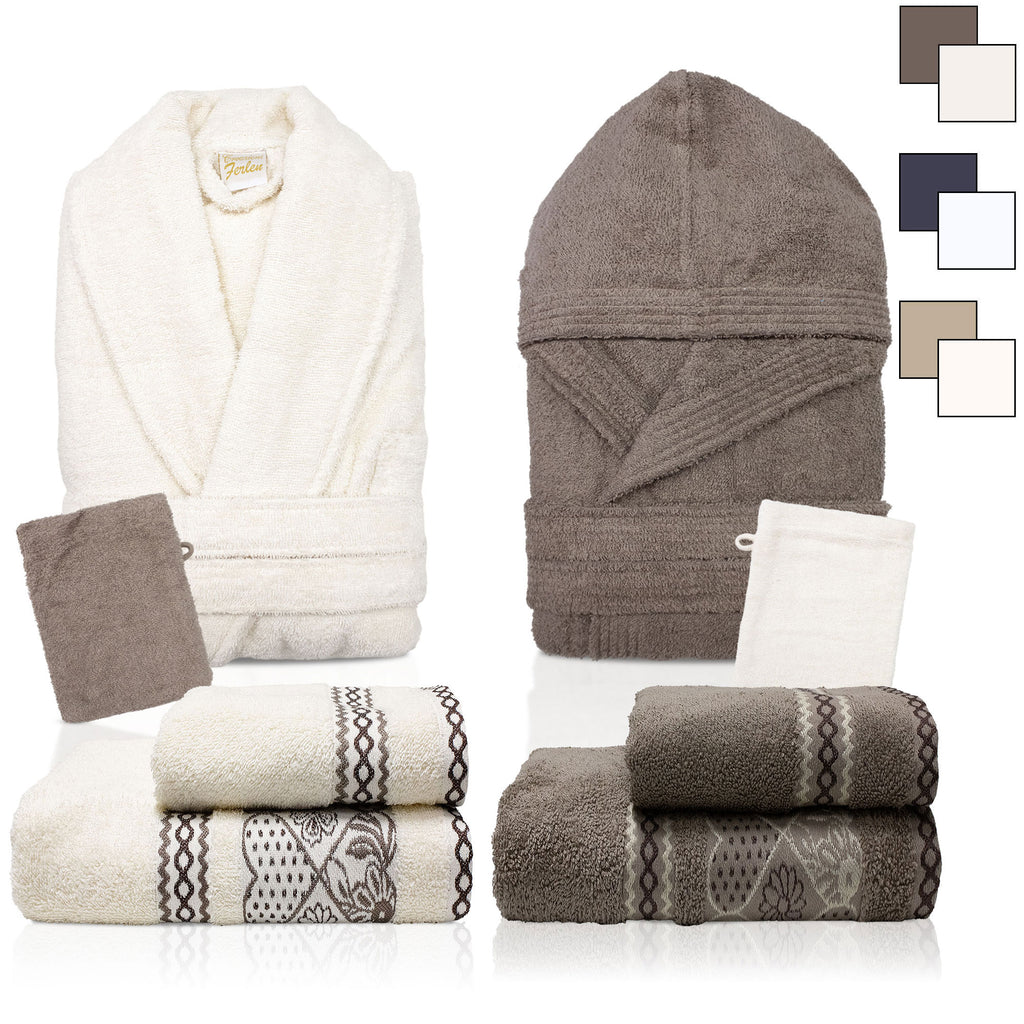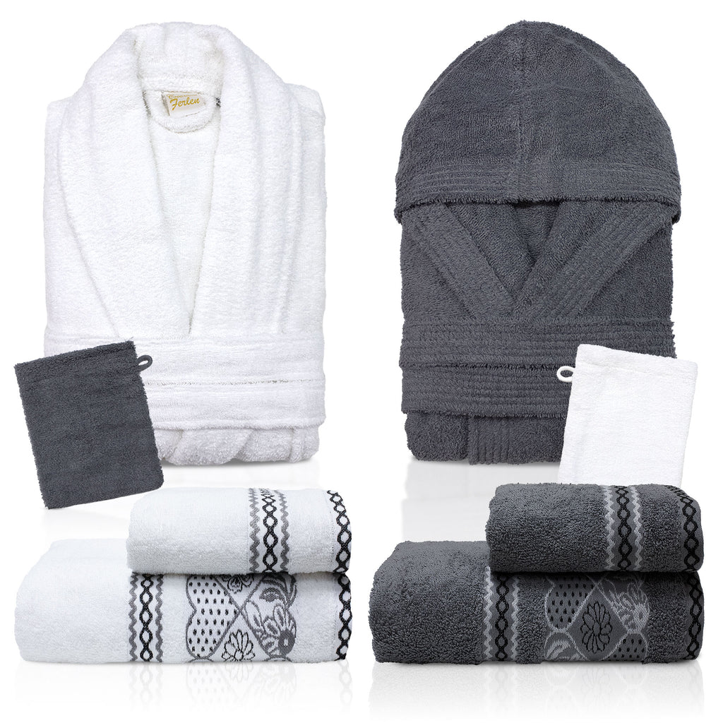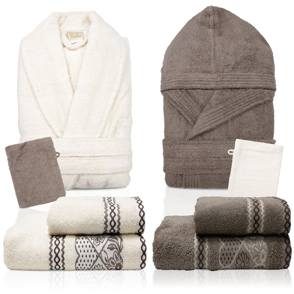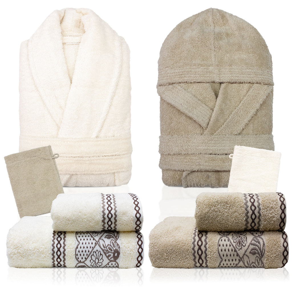 Completo bagno asciugamani accappatoi set uomo donna in spugna di cotone 7157