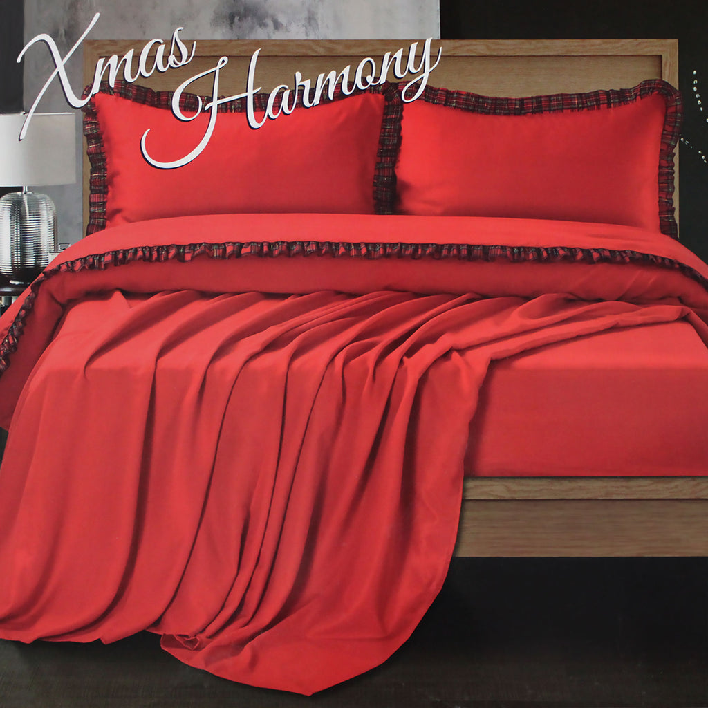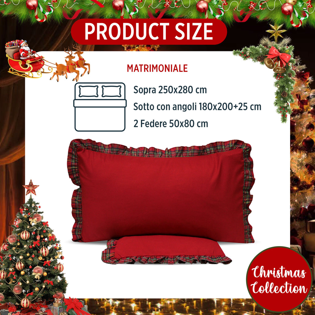 Bring the enchanting Christmas spirit to your bedroom with the Preziosa Home Tartan Sheet Set, a masterpiece from the Xmas Harmony collection. This double-bed set exudes elegance and warmth, crafted from fine, solid-color manpopesca fabric , embellished with delicate frills in a classic tartan pattern.