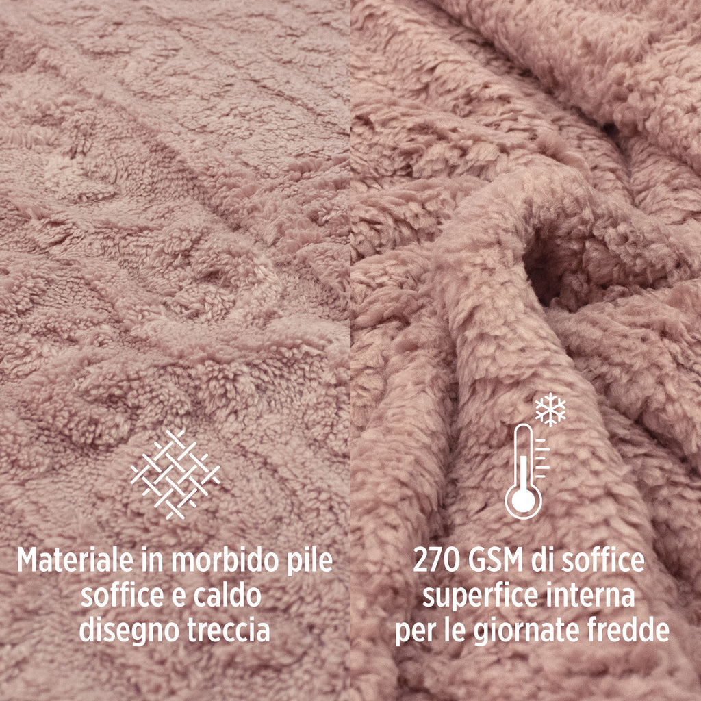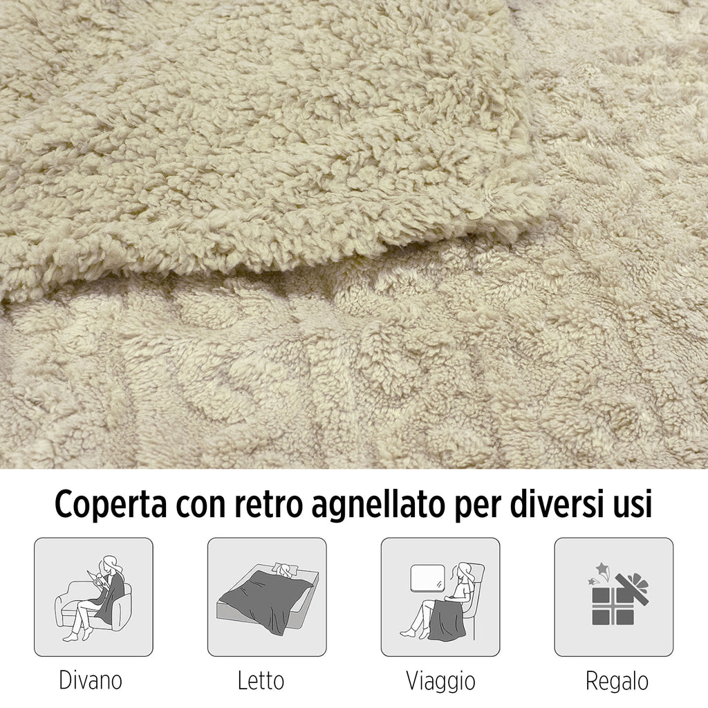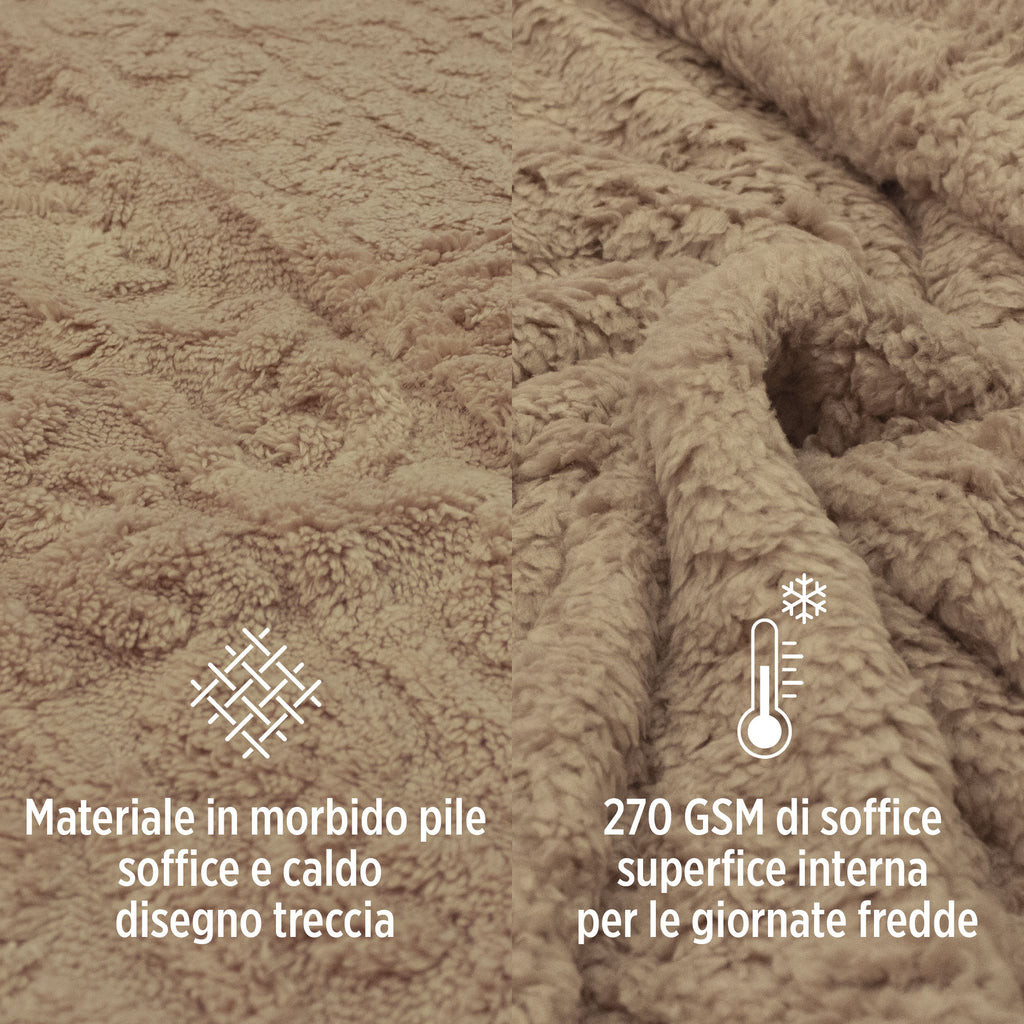 Discover the pleasure of enveloping warmth with our lambskin plaid blanket, a perfect combination of style and comfort. This double blanket, with a generous size of 195x200cm, is embellished with an elegant cable design that adds a touch of sophistication to any environment. Made from soft 270gsm fleece, it offers a soft and warm internal surface, ideal for snuggling up during the coldest days.