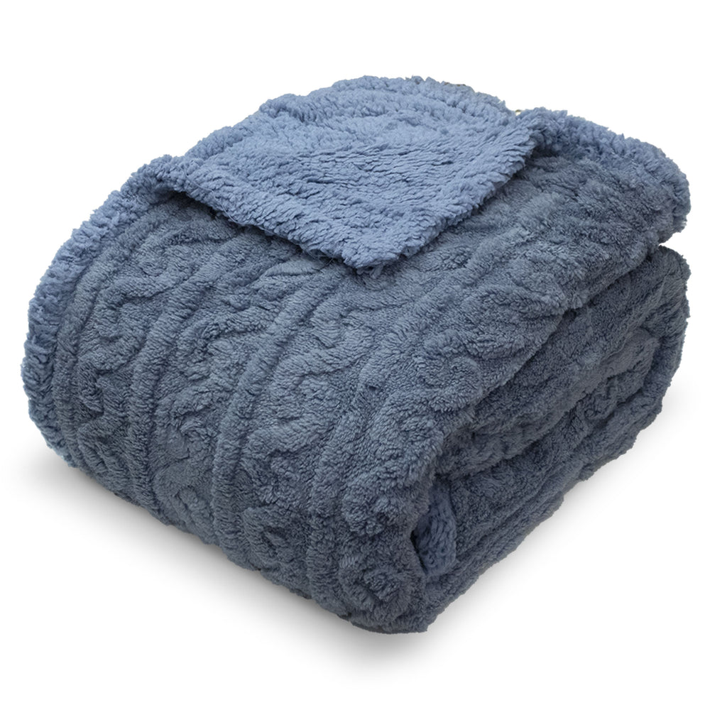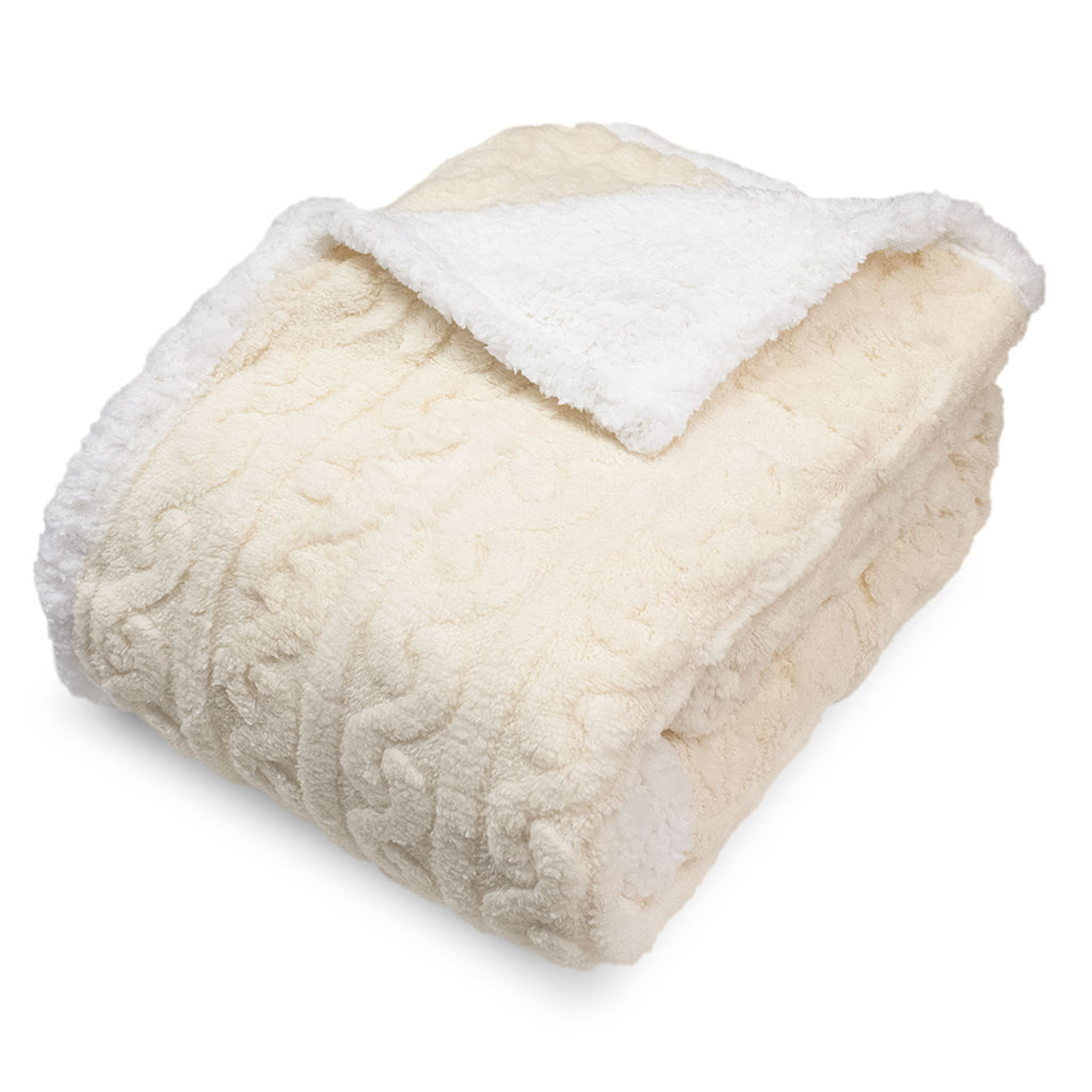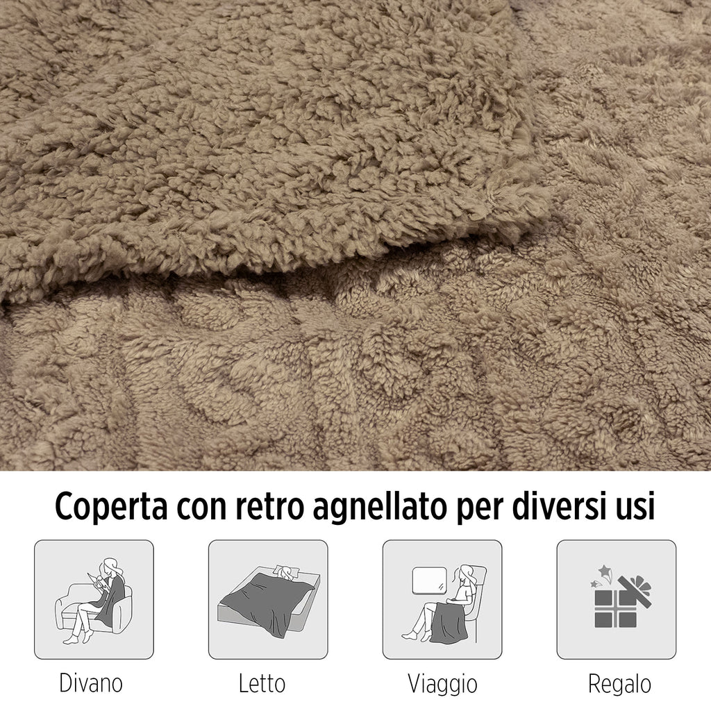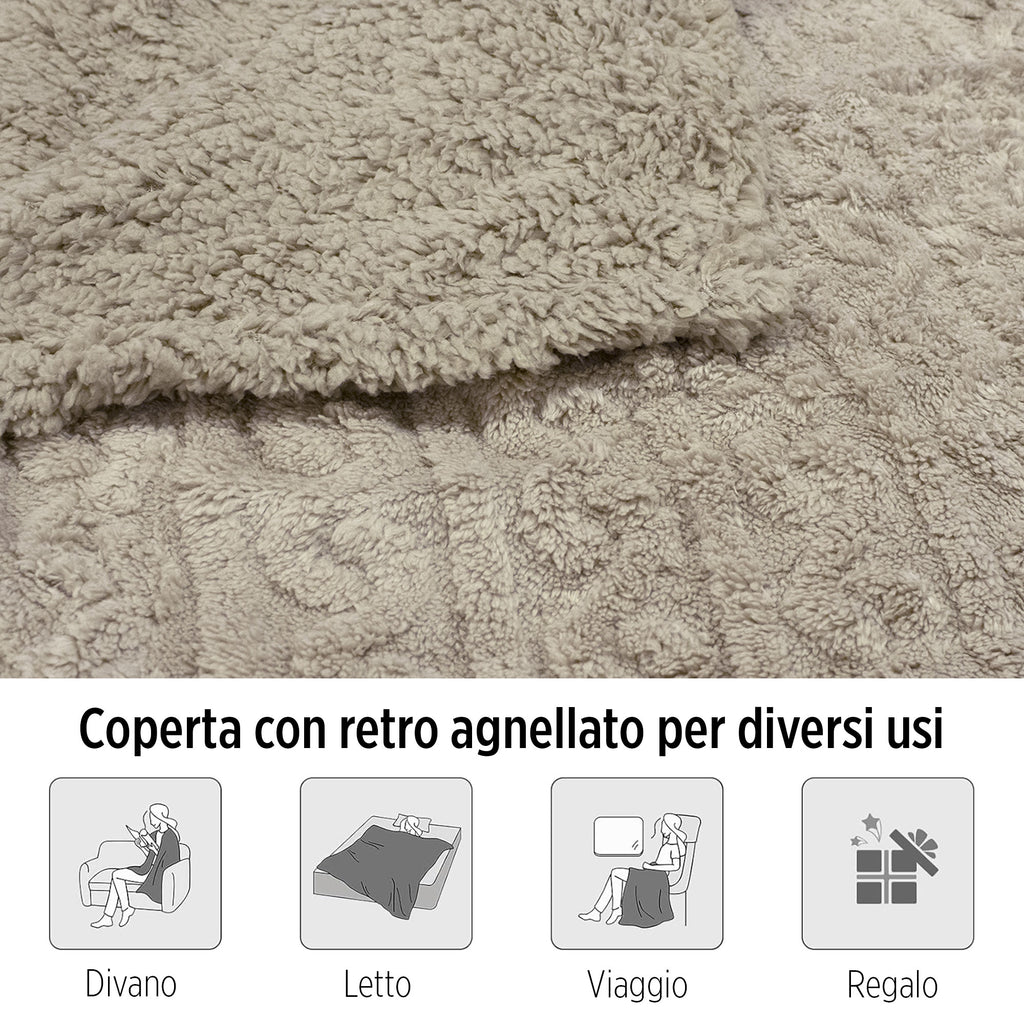 Discover the pleasure of enveloping warmth with our lambskin plaid blanket, a perfect combination of style and comfort. This double blanket, with a generous size of 195x200cm, is embellished with an elegant cable design that adds a touch of sophistication to any environment. Made from soft 270gsm fleece, it offers a soft and warm internal surface, ideal for snuggling up during the coldest days.