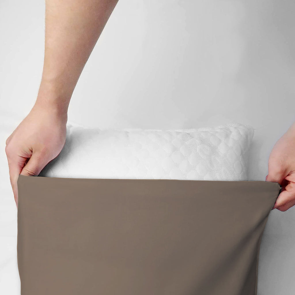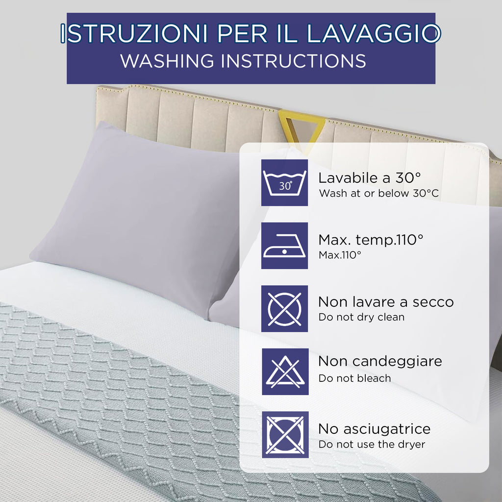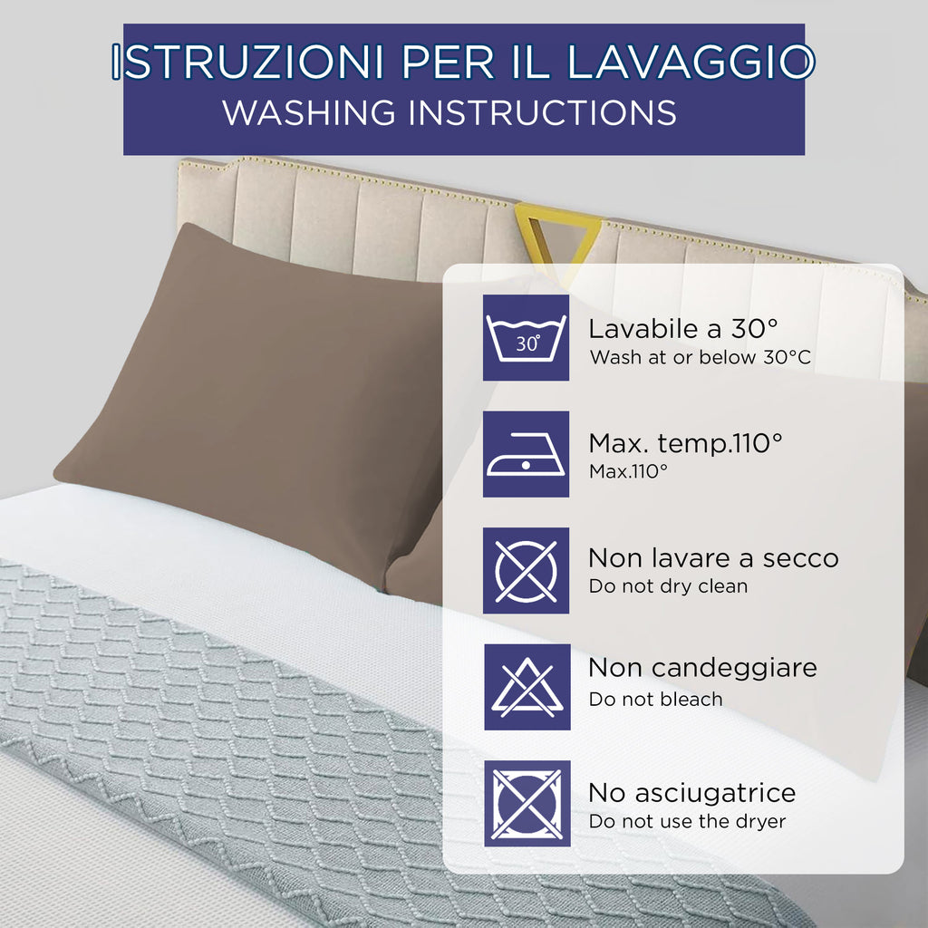 The pillowcases are designed to combine practicality and style. The internal flap keeps the pillow securely in place, preventing uncomfortable shifting during the night. This closure system, without zippers, buttons, or laces, makes the pillowcases extremely easy to use and wash, ensuring a smooth, bulk-free surface.