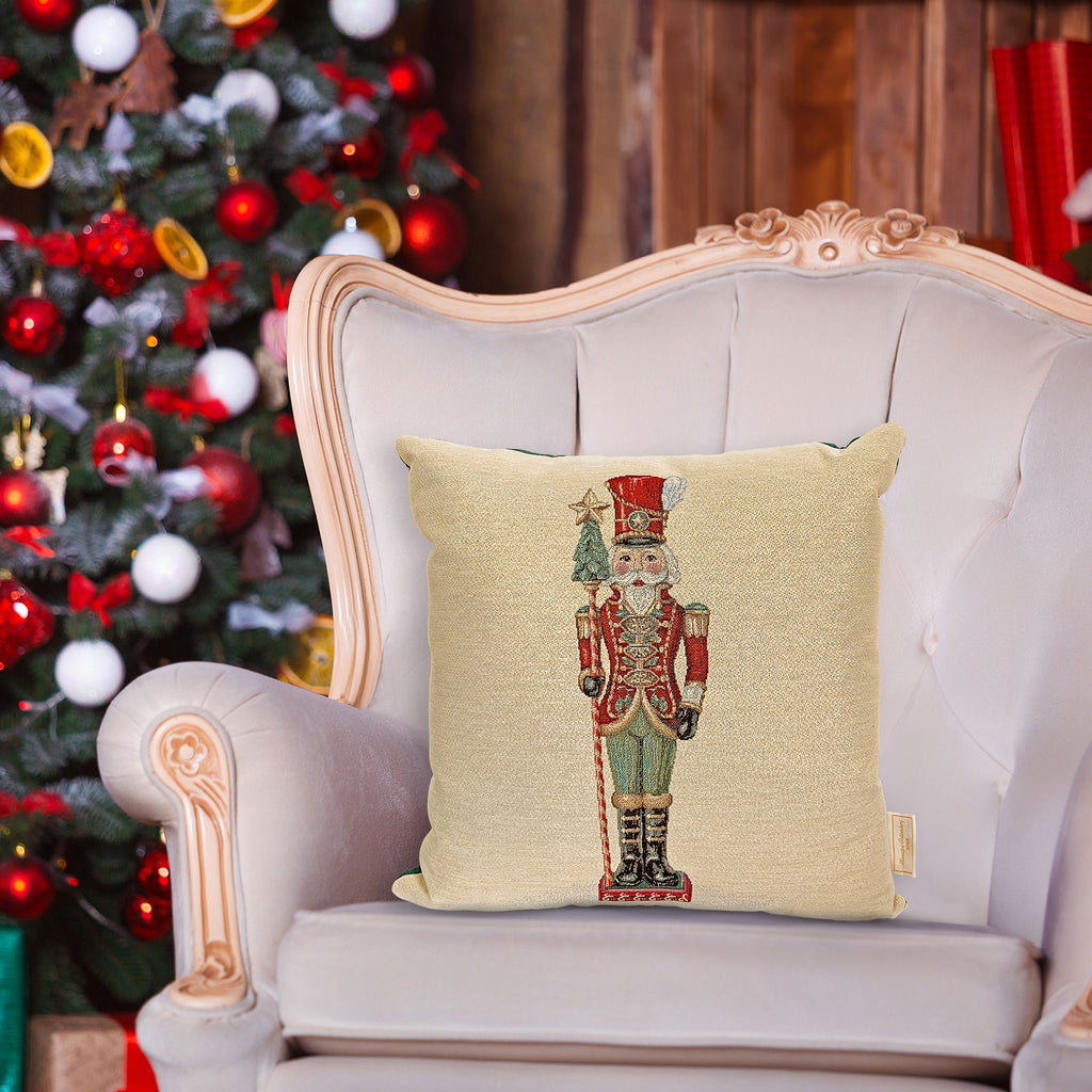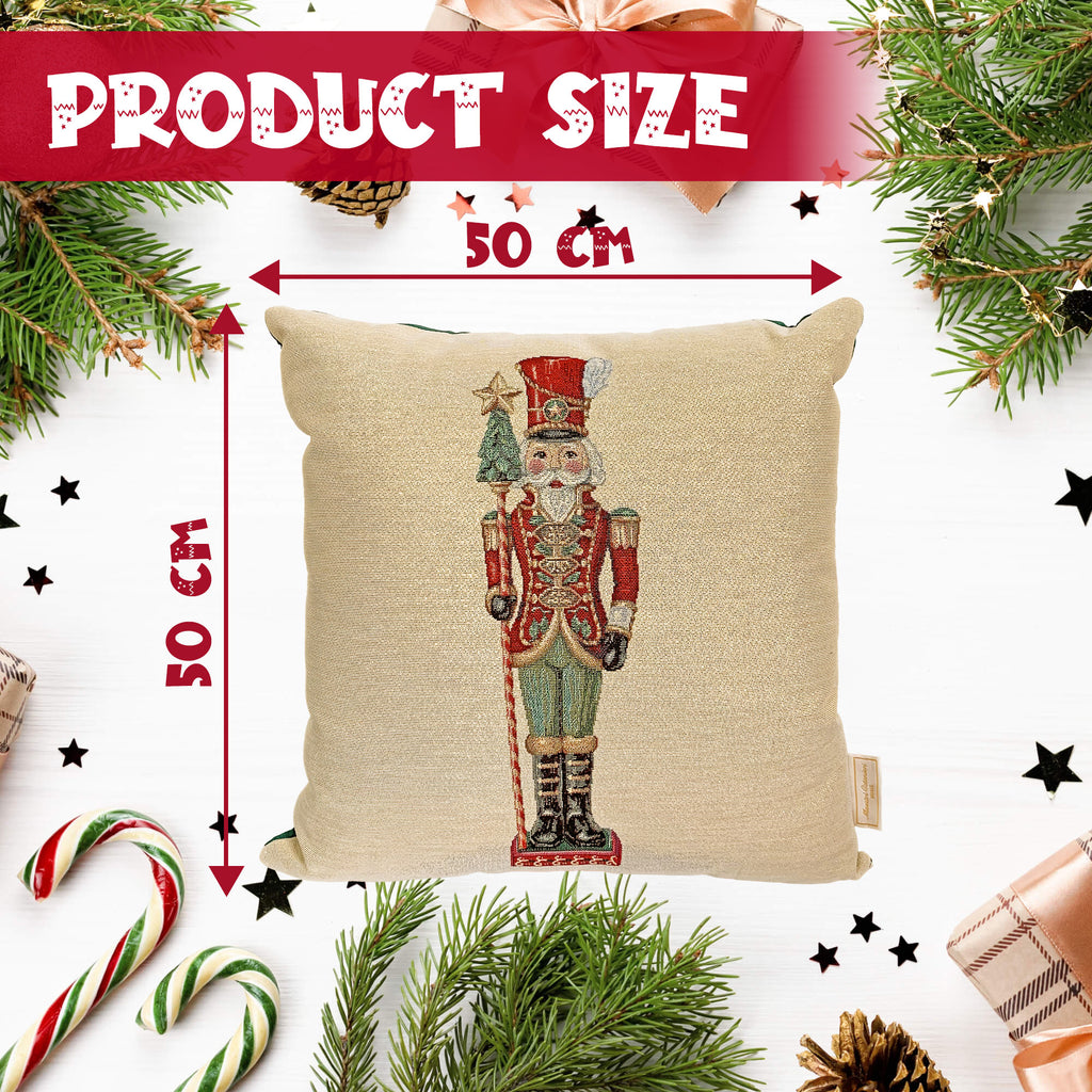 Bring the magic of Christmas into your home with our 50x50cm gobelin Christmas cushion, sparkling with golden magic and adorned with flawless embroidery depicting a Nutcracker. This pillow is much more than a simple accessory; it's a work of textile art that will bring the beauty and warmth of the holidays right into your home.