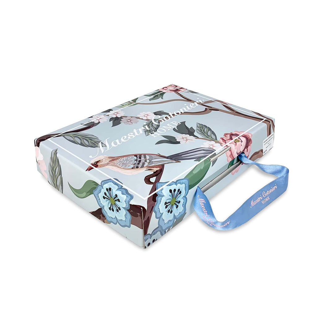 The product is packaged in an elegant box signed by Maestri Cotonieri with satin handle.