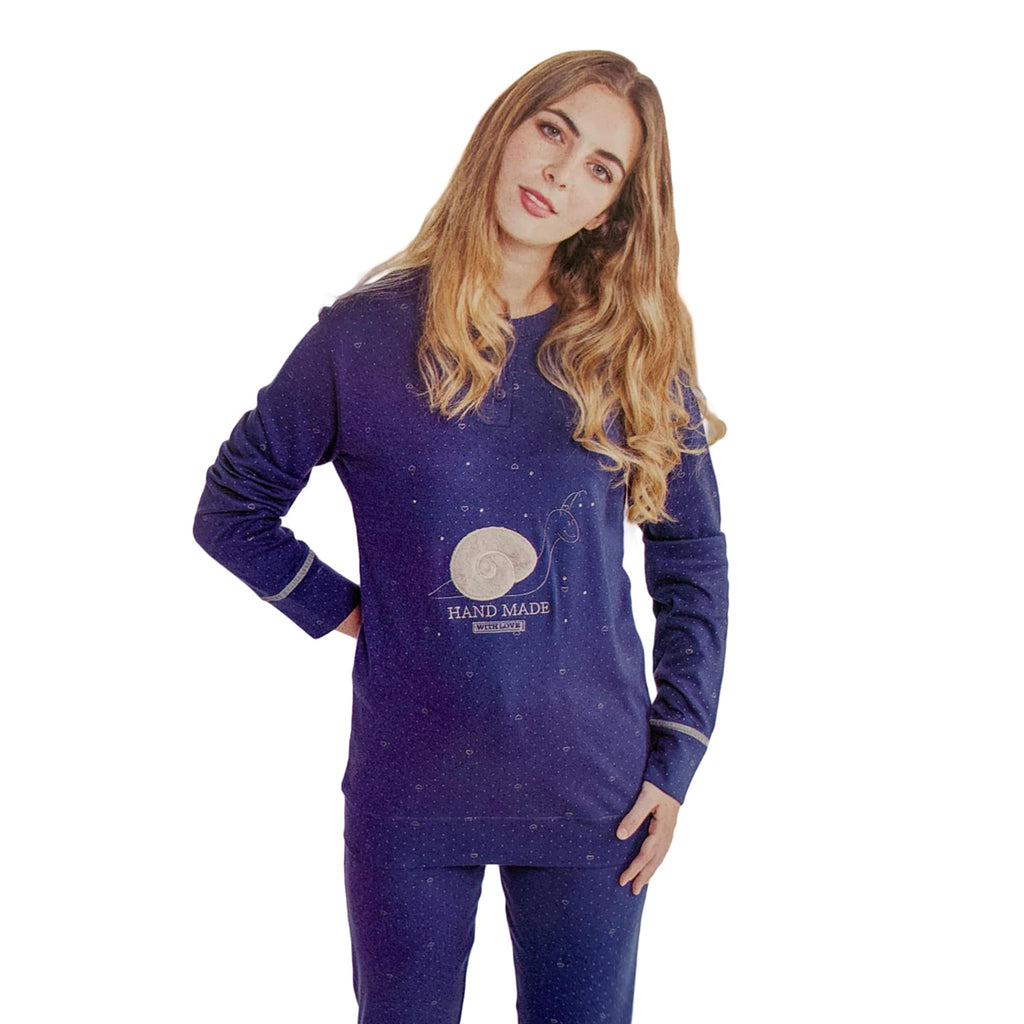 Long women's Interlock winter seraph pajamas in warm cotton 2 pieces.