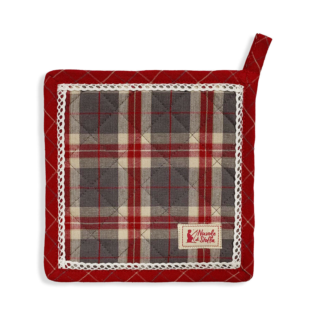 Christmas baking pot holder Bonnie collection with decorations and tartan print in pure cotton with hook Made of fabric, ideal for hanging.