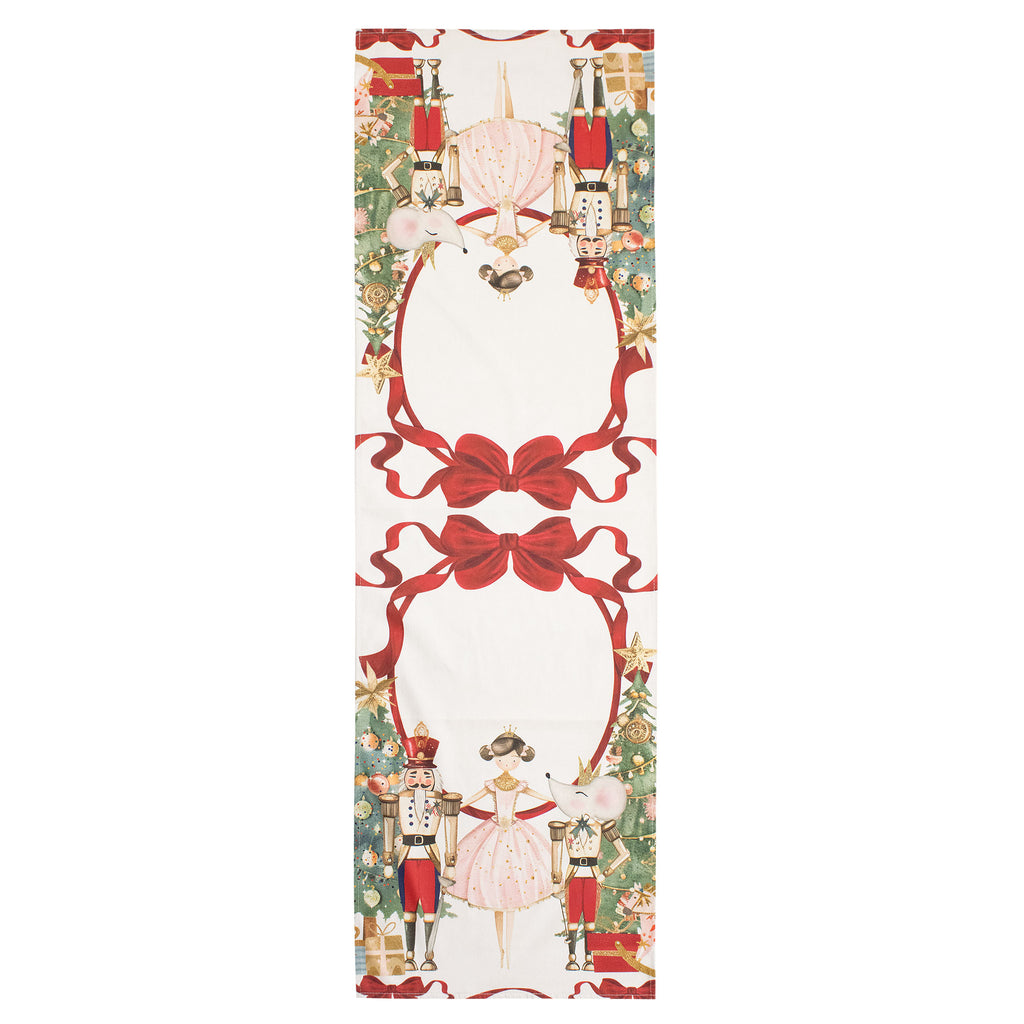 Porta la magia del Natale sulla tua tavola con il runner Odette in 100% puro cotone. Il suo motivo ispirato allo Schiaccianoci unisce eleganza e tradizione, con fiocchi rossi, alberi addobbati e personaggi fiabeschi che rendono speciale ogni apparecchiatura.