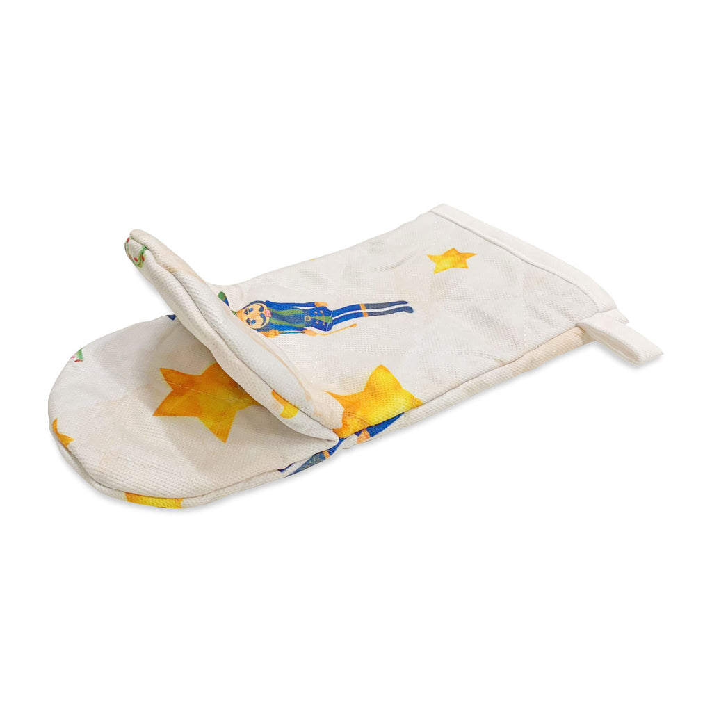 3-piece set: enriched Antica Tessitura Italiana oven glove and stain-resistant pot holders from cute Christmas prints.