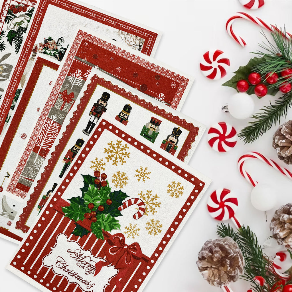 The set consists of six tea towels, each decorated with enchanting Christmas patterns such as Nutcrackers, snowmen, Santa Claus, hollies and Christmas trees ready to bring a smile of joy to your every gesture in the kitchen and convey the festive atmosphere in every corner of your kitchen.