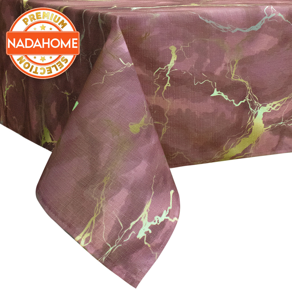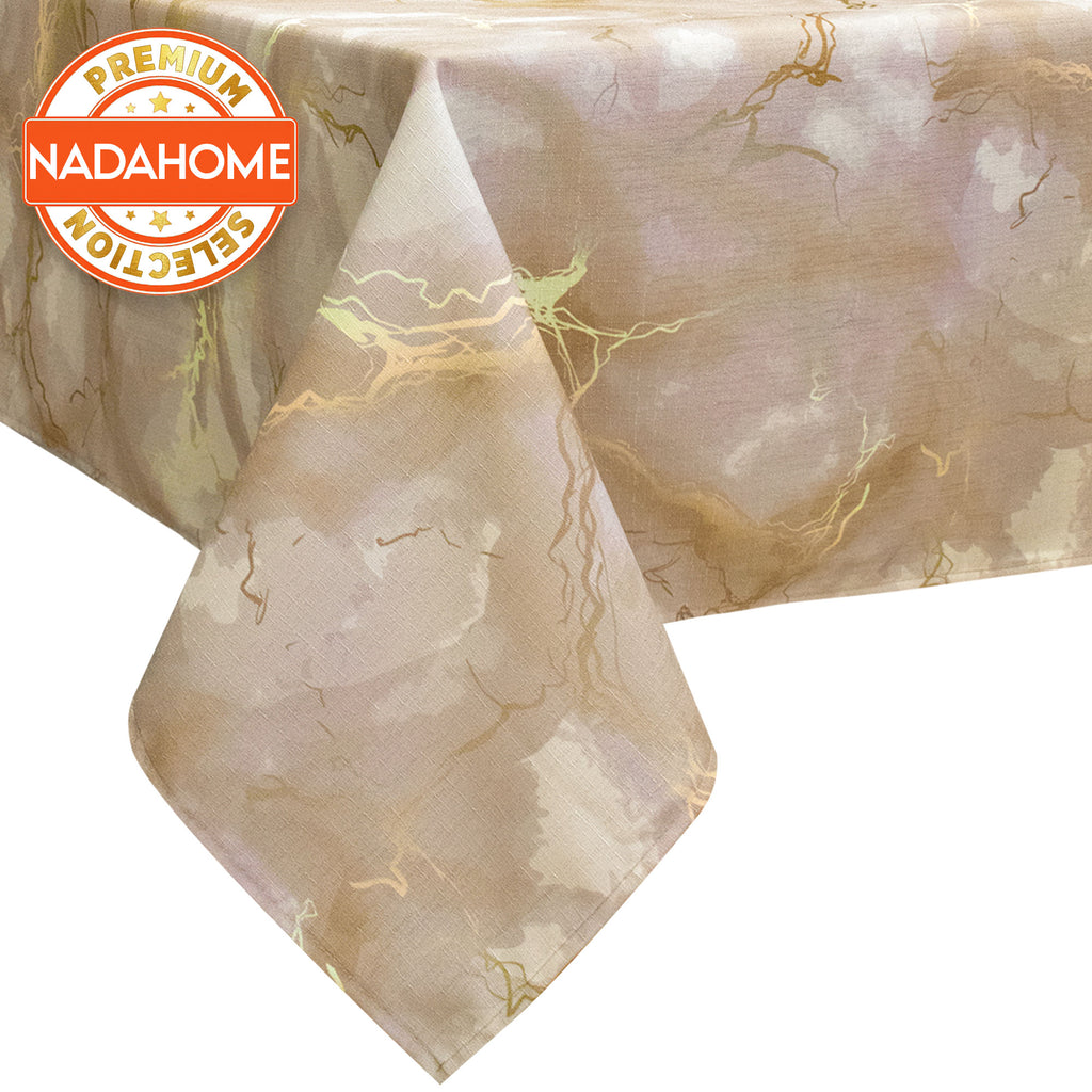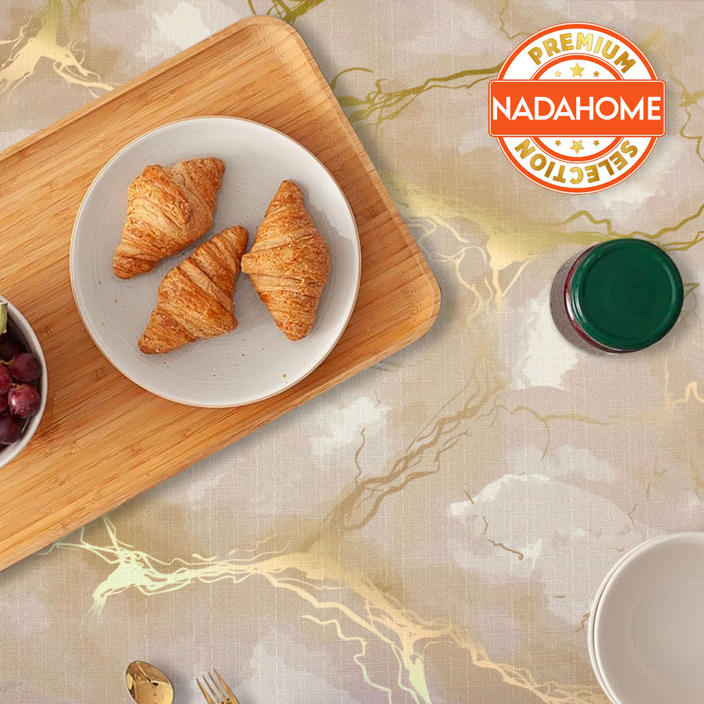 Add a touch of modern elegance to your table with our marble effect tablecloth. The high definition digital print faithfully reproduces the veining of the marble with refined golden details, creating a sophisticated and modern atmosphere.