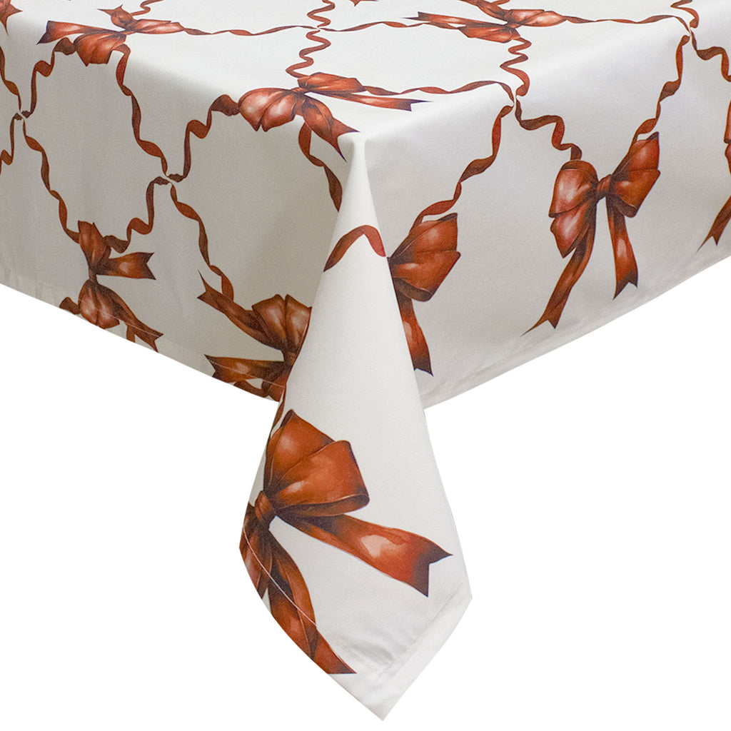 Bring the Christmas spirit to your table with this elegant stain-resistant 6-seater tablecloth. Featuring a vibrant red bow print that covers the entire surface, it will add a festive touch to any festive meal. Measuring 140x180cm, it is perfect for 6-seater tables, offering optimum coverage.