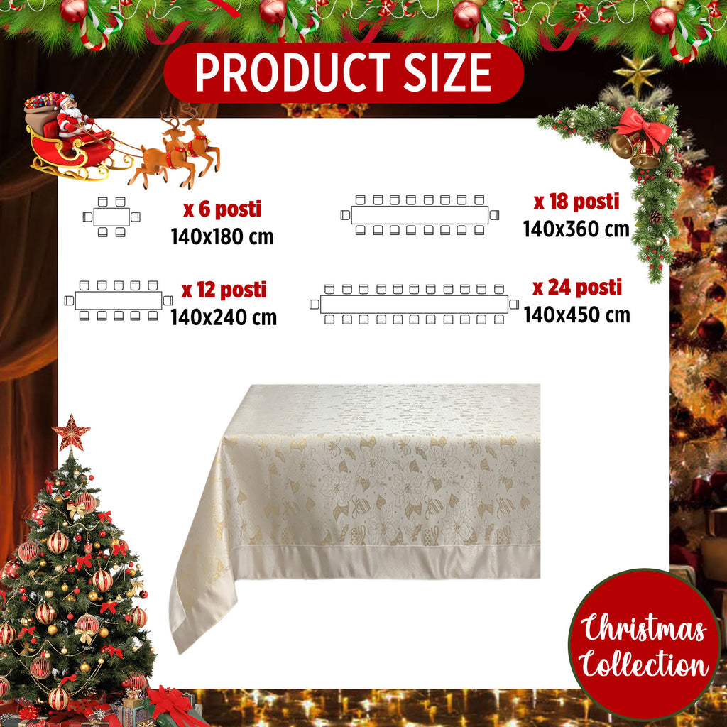 Immerse yourself in the magical atmosphere of the holidays, welcoming friends and family into a space where beauty and practicality blend harmoniously thanks to the stain-resistant, water-repellent, non-iron lurex jacquard Christmas tablecloth from Preziosa Home.