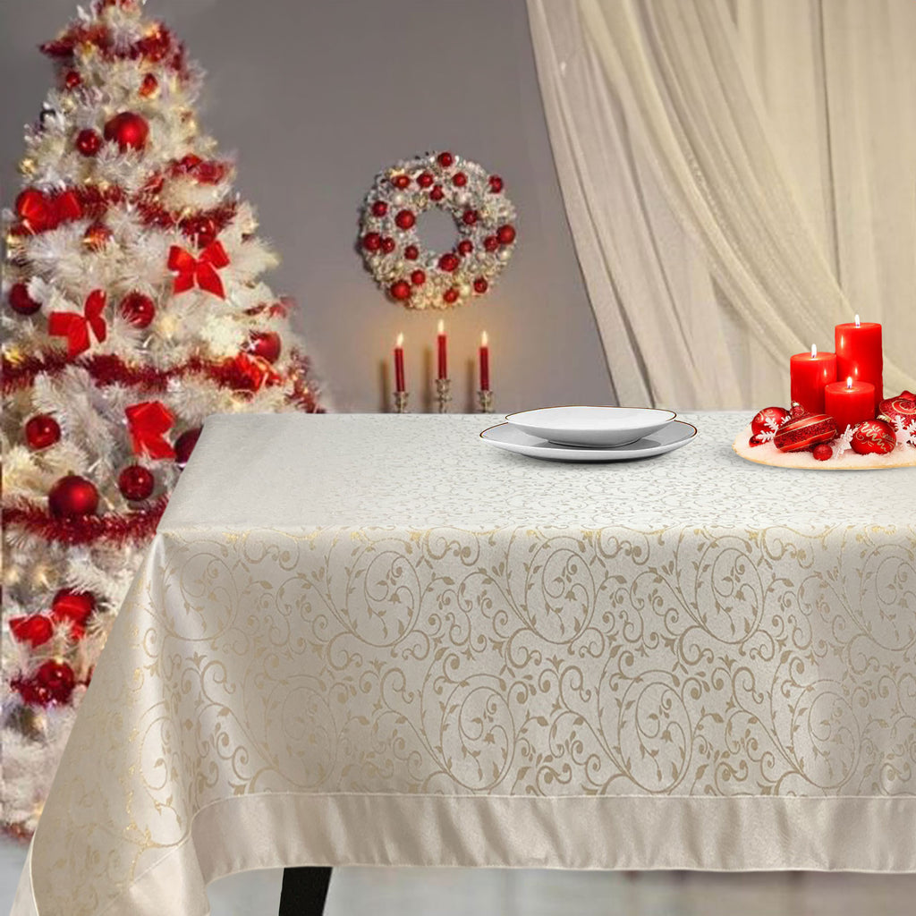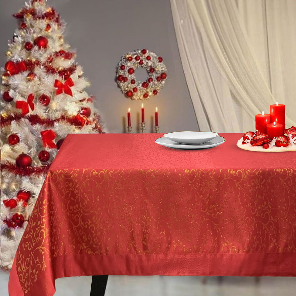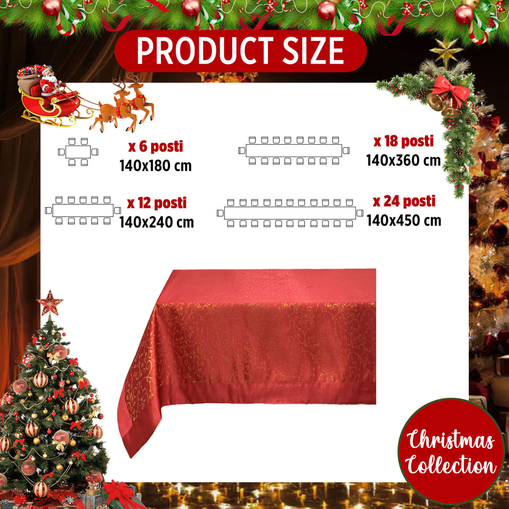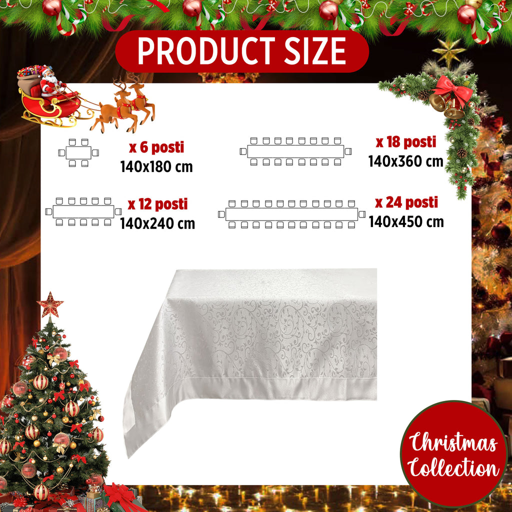 Immerse yourself in the magical atmosphere of the holidays, welcoming friends and family into a space where beauty and practicality blend harmoniously thanks to the stain-resistant, water-repellent, non-iron lurex jacquard Christmas tablecloth from Preziosa Home.