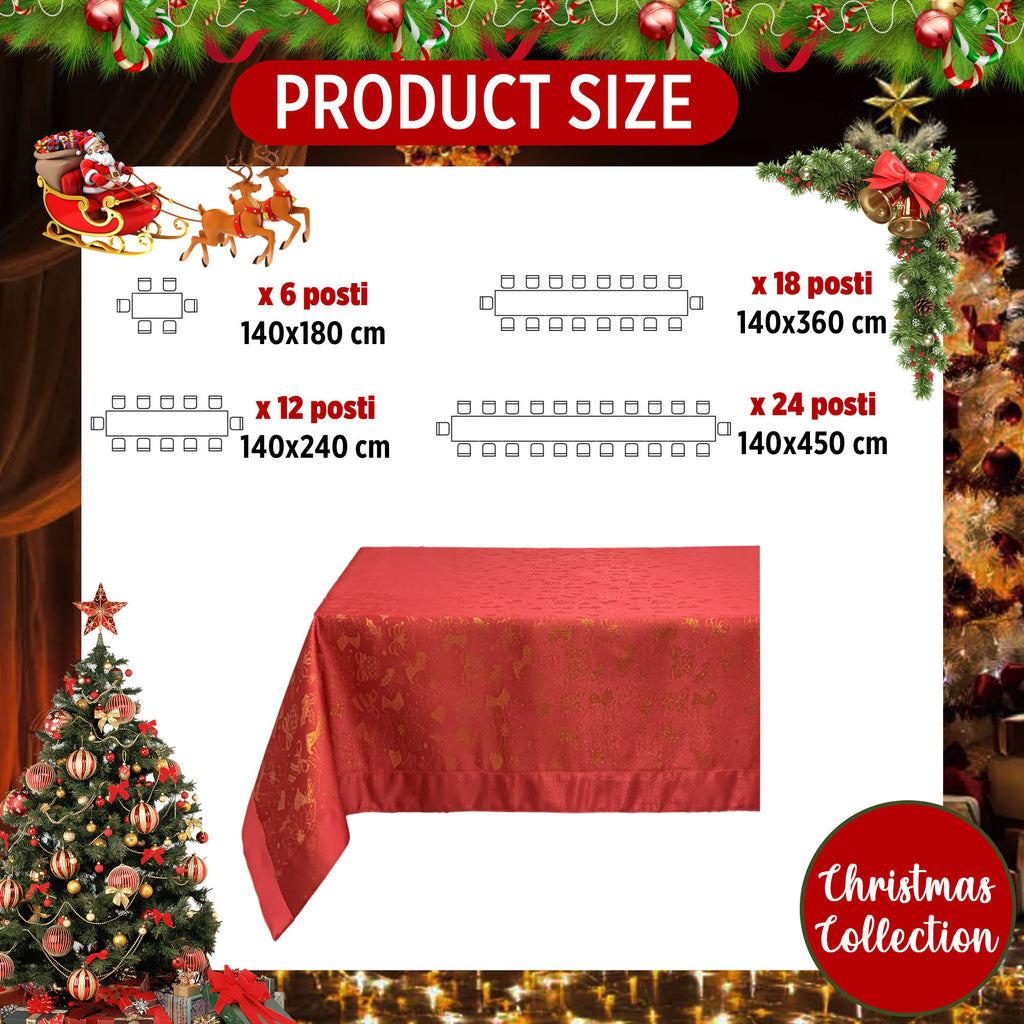 Immerse yourself in the magical atmosphere of the holidays, welcoming friends and family into a space where beauty and practicality blend harmoniously thanks to the stain-resistant, water-repellent, non-iron lurex jacquard Christmas tablecloth from Preziosa Home.