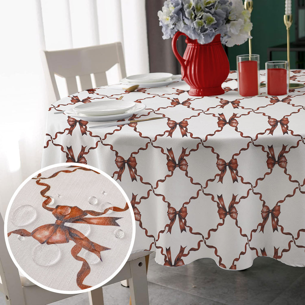Round Christmas Tablecloth 8 Seater Stain Resistant Waterproof Christmas Bow 6911