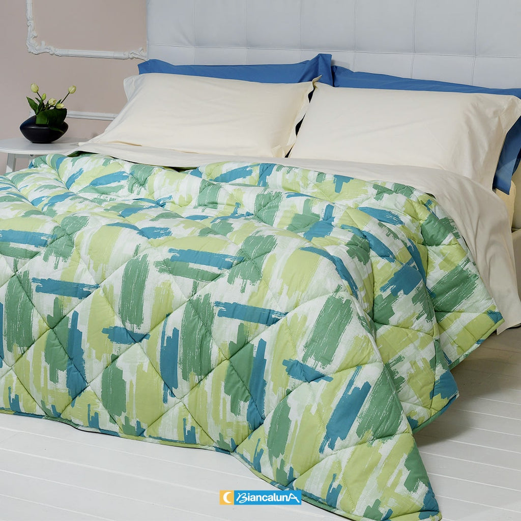 The Biancaluna quilt with its colorful fabric makes a suitable lively effect to any type of environment.
