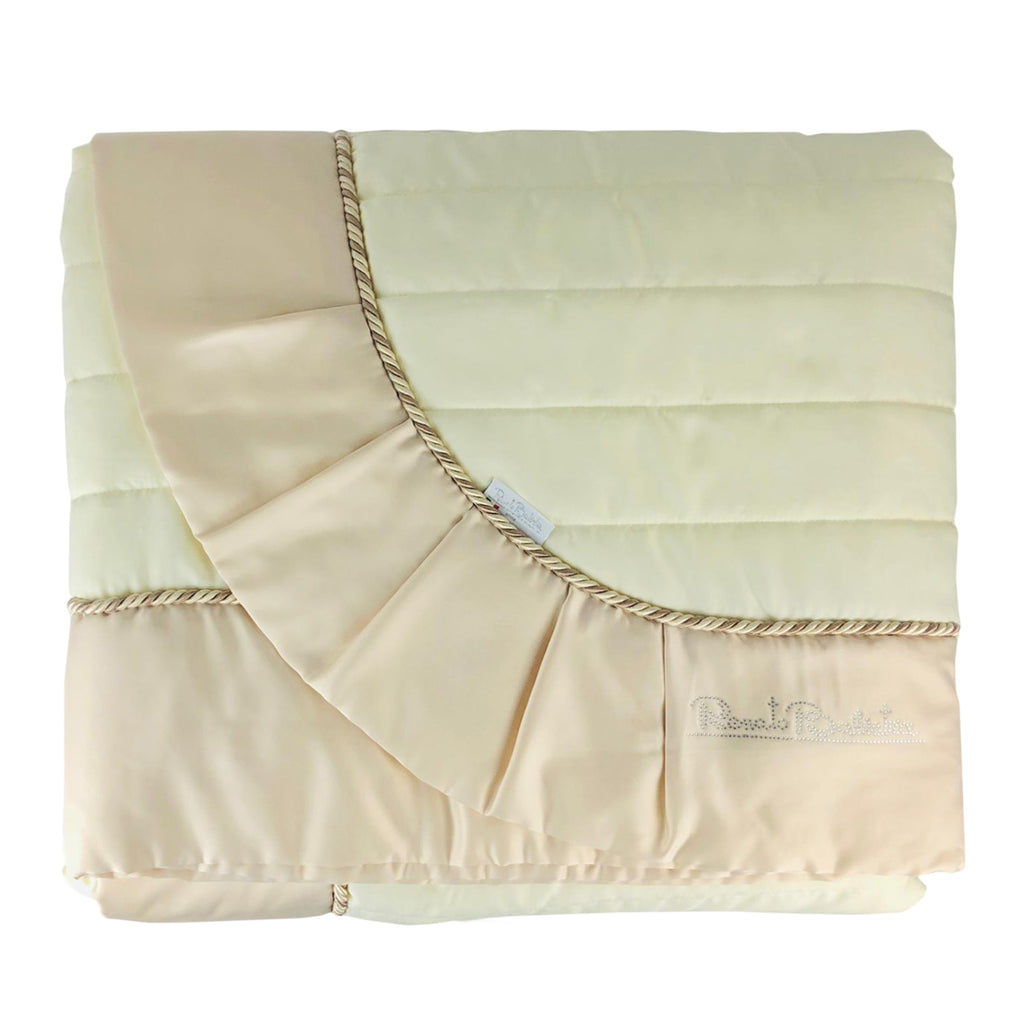 Quilt Renato Balestra Ludovica with cord and rhinestone writing on the edge.