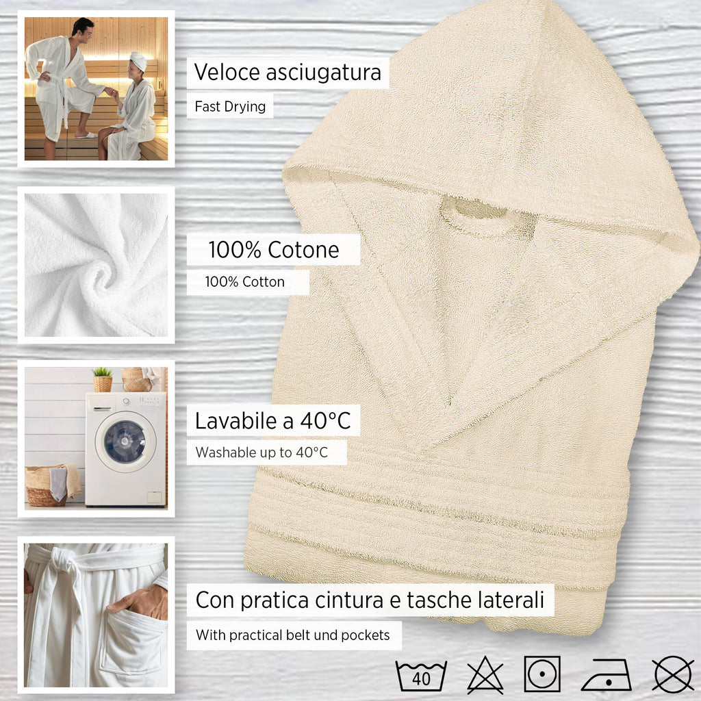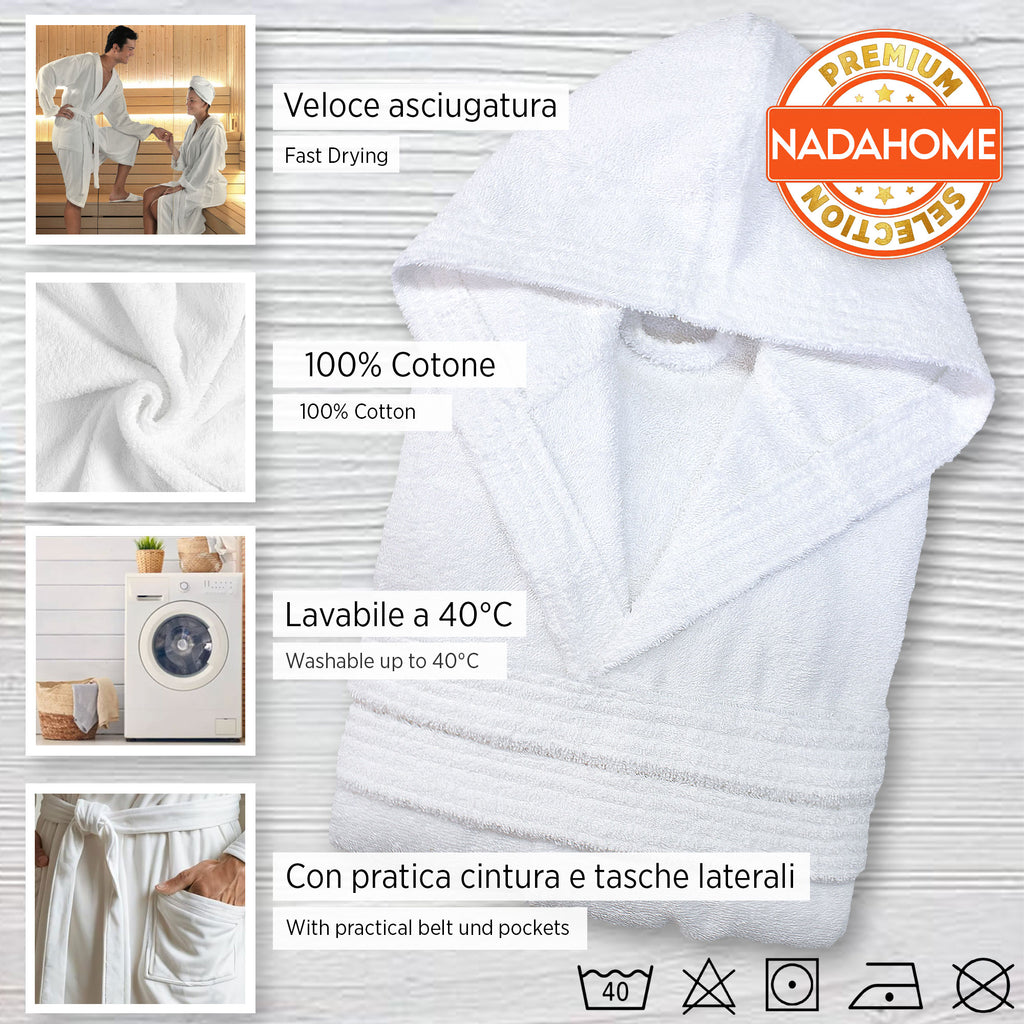 Accappatoio in spugna di cotone con cappuccio unisex uomo donna adulto 7042