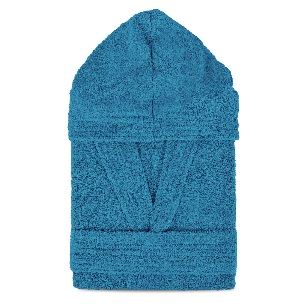 Dotato di un pratico cappuccio, cintura in vita con passanti e due comode tasche, è studiato per garantire la massima comodità dopo il bagno o la doccia.