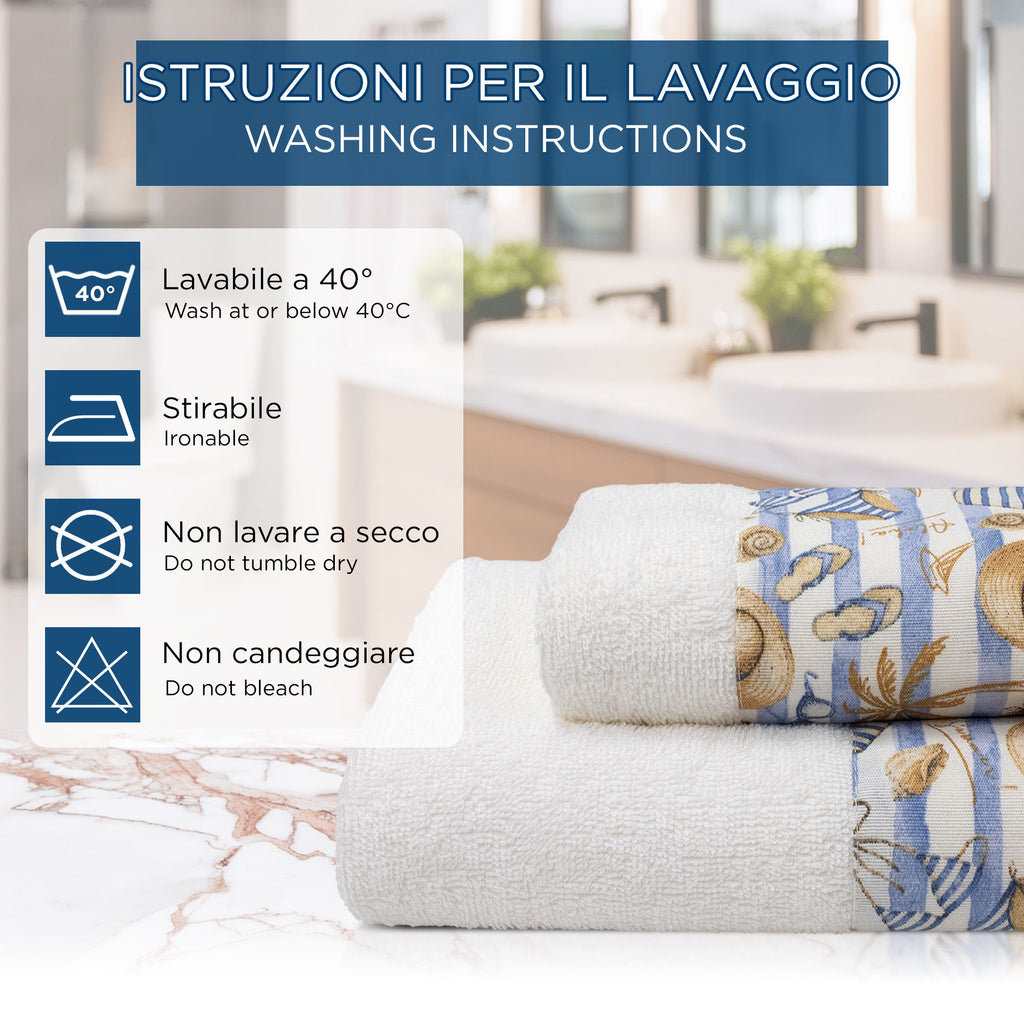 Ideale come regalo raffinato o come aggiunta elegante per il tuo bagno, il nostro set di asciugamani in stile marino è la scelta perfetta per chi desidera un prodotto di qualità superiore, esteticamente gradevole e completamente Made in Italy.