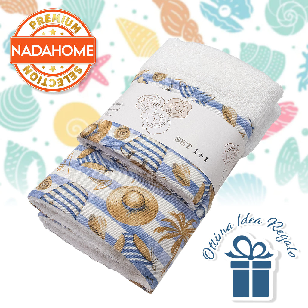 Asciugamani bagno stile marino Set 1+1 in spugna di cotone Viso e Ospite 6822