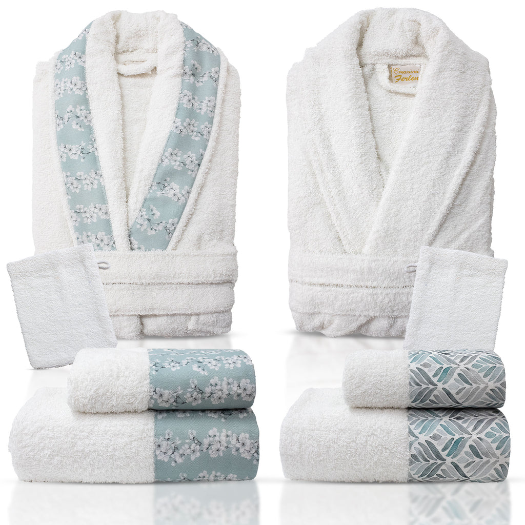 Completo bagno asciugamani accappatoi set uomo donna in spugna di cotone 7128
