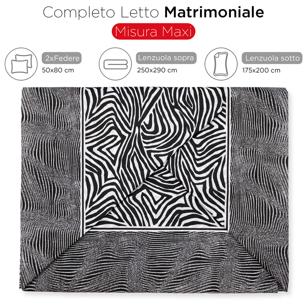 Completo Lenzuola zebrato letto matrimoniale lenzuolo zebra Animalier 6865