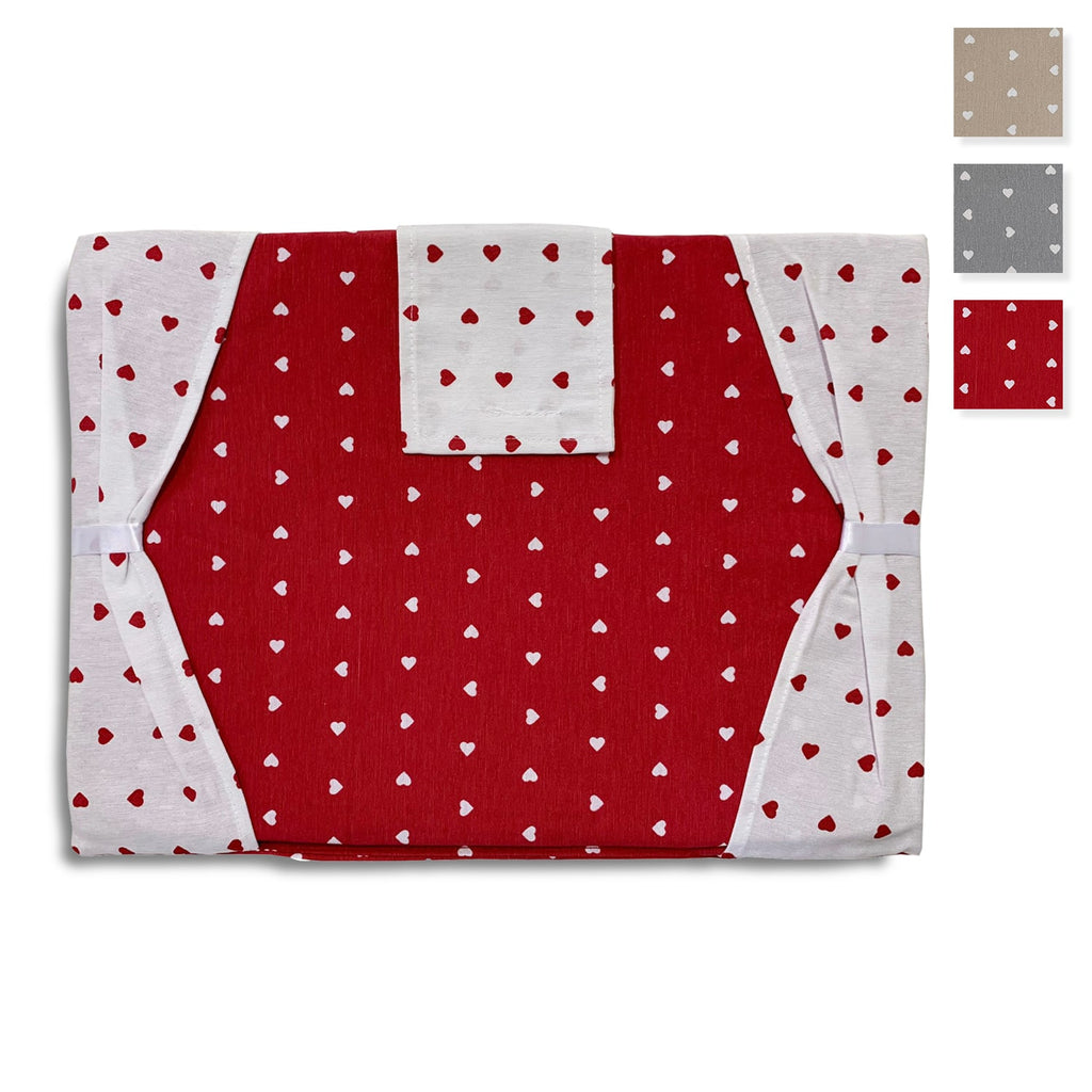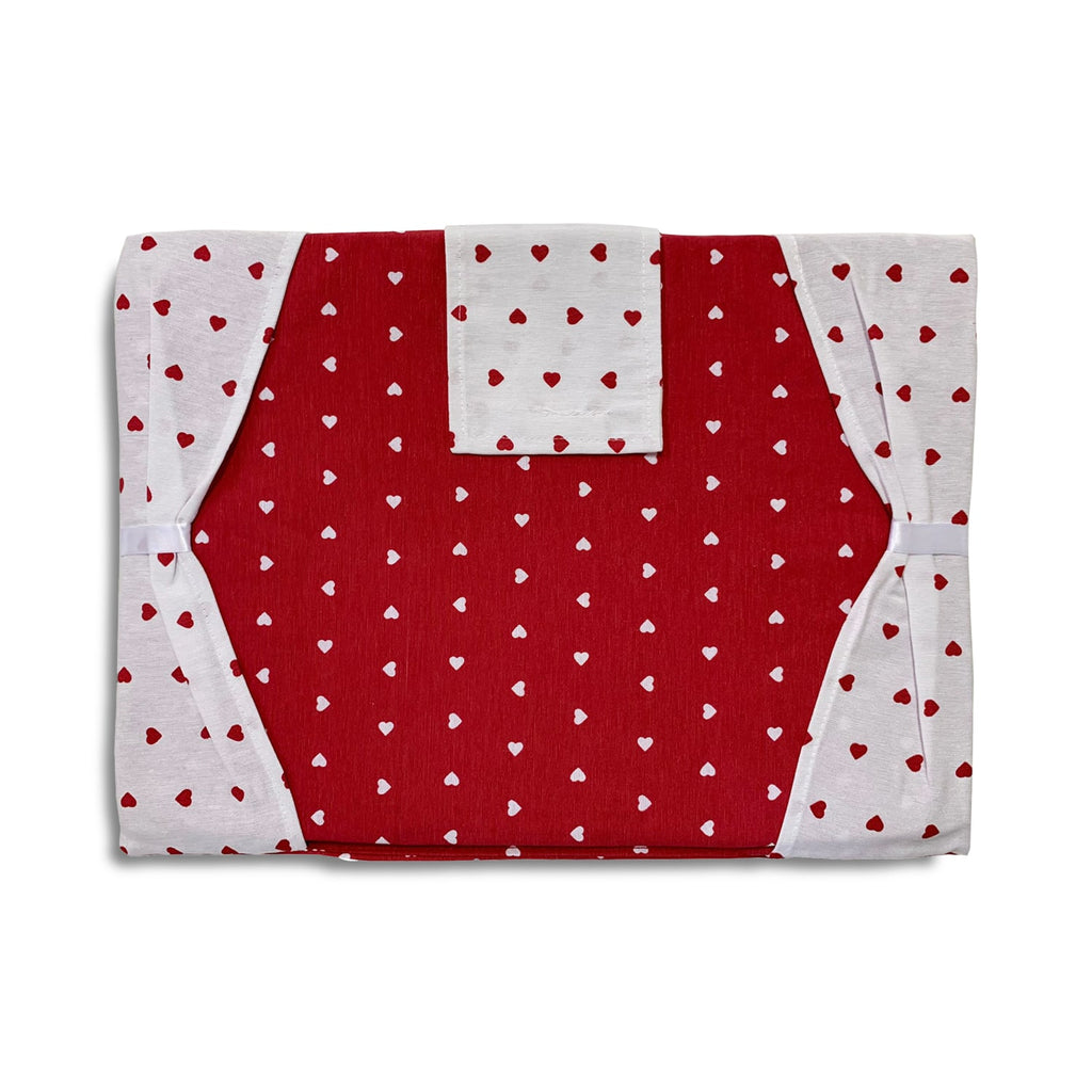 Copriforno imbottito in fantasia cuori e volant.