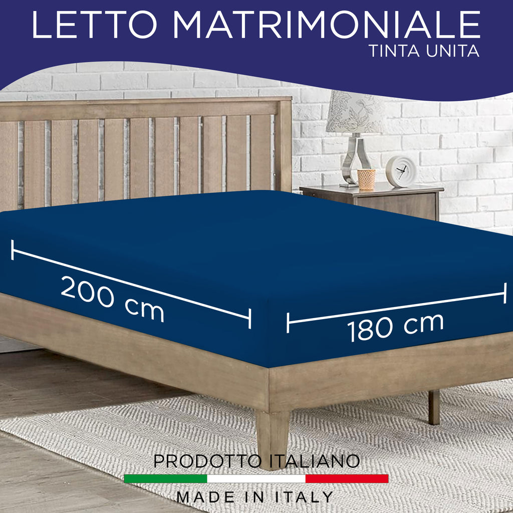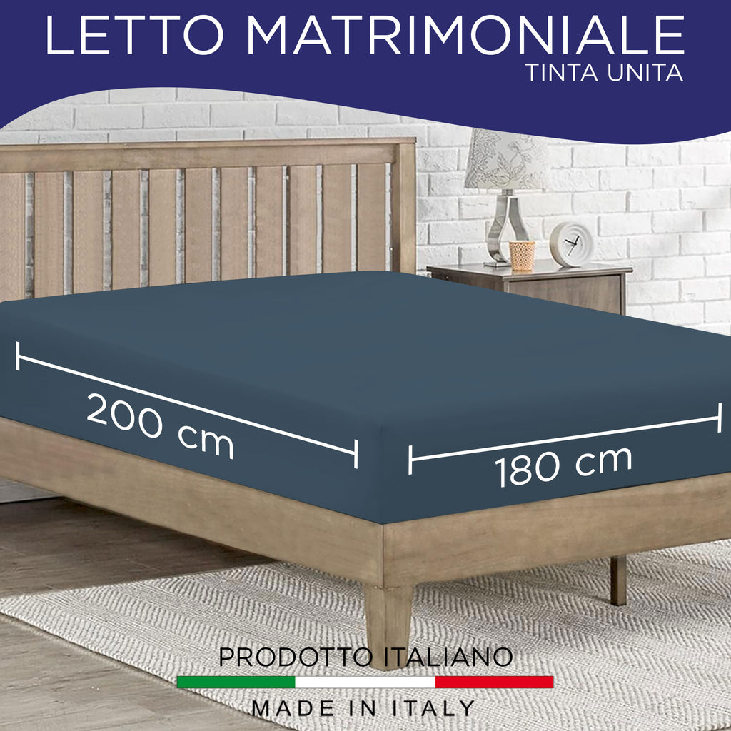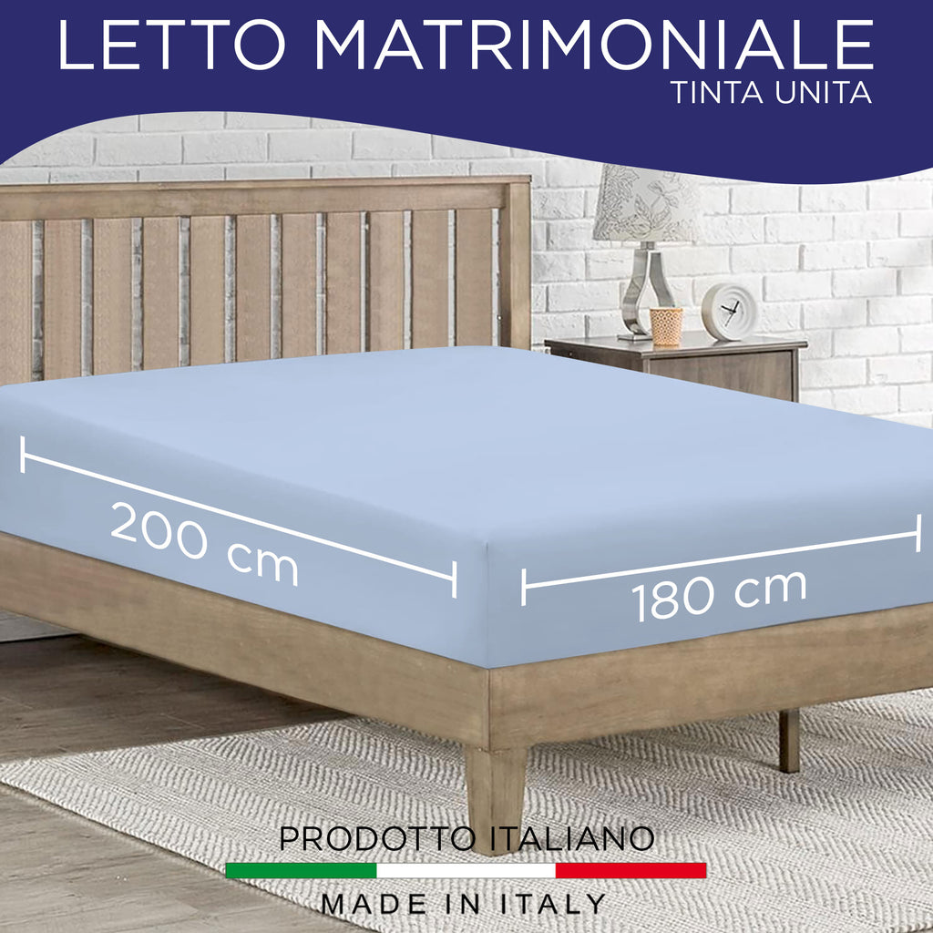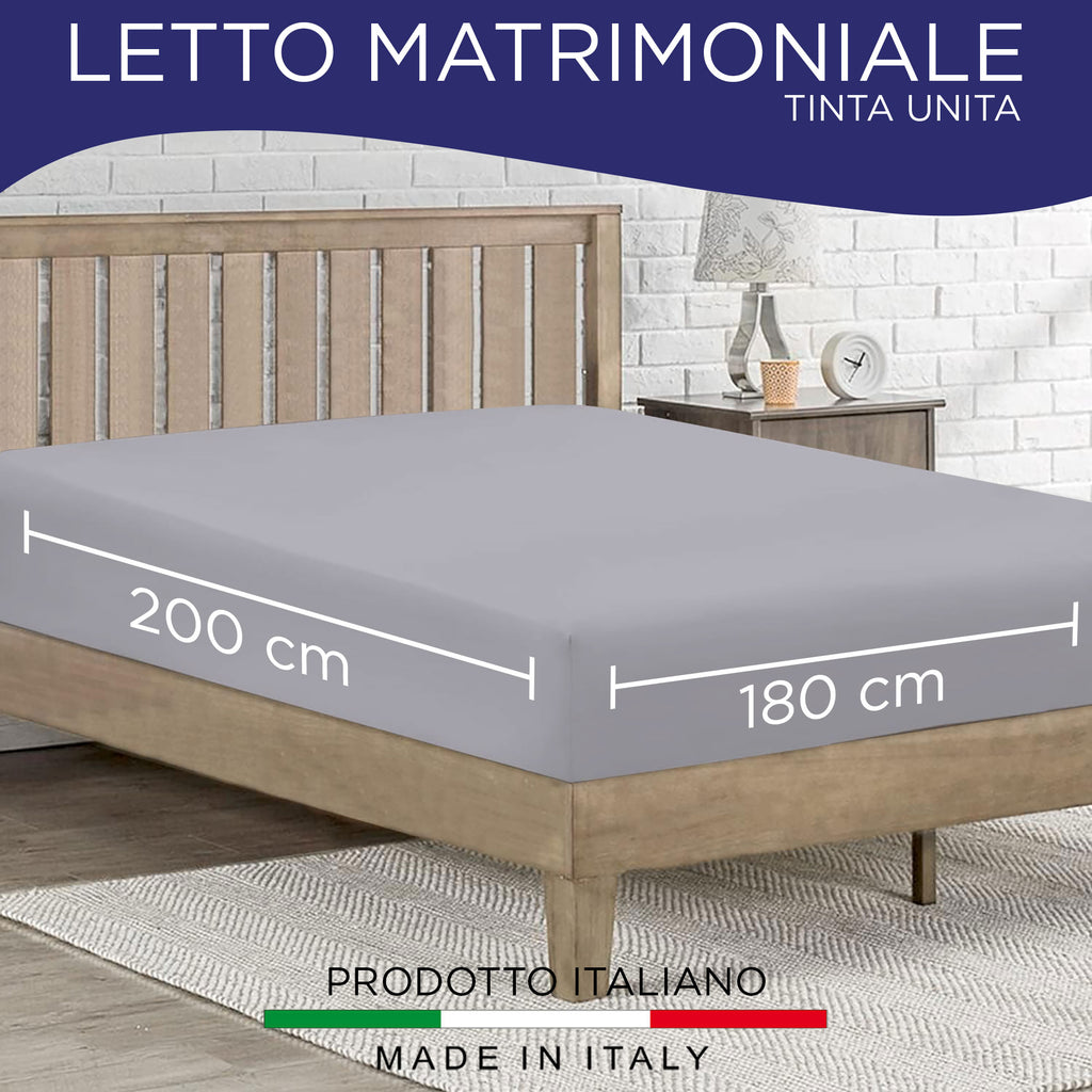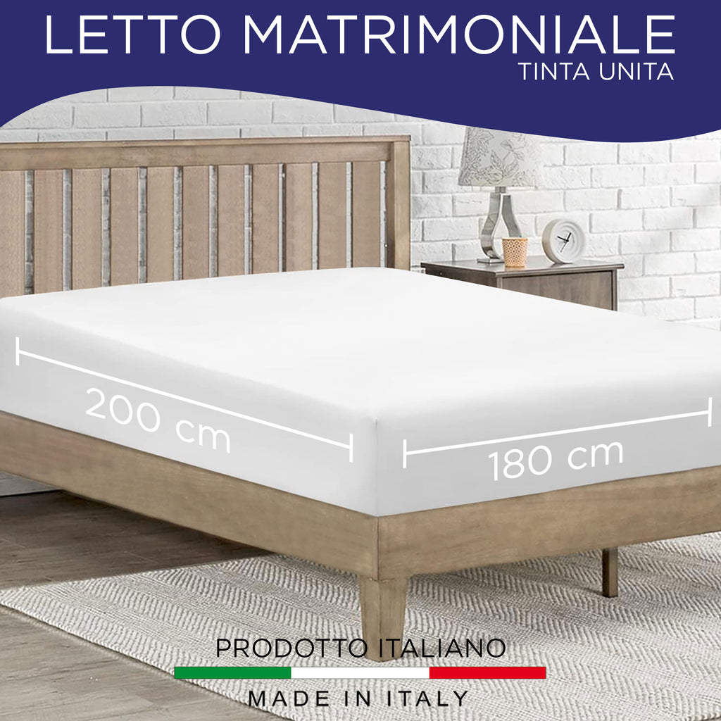 Dona un tocco di comfort e stile al tuo letto matrimoniale con il nostro lenzuolo sotto con angoli in tinta unita, pensato per garantirti un riposo di qualità. Questo lenzuolo misura 180x200cm con un'altezza di 25cm, dimensioni perfette per adattarsi a materassi di diverse altezze. Realizzato interamente in Italia, è il risultato di una lavorazione accurata che assicura resistenza e lunga durata.