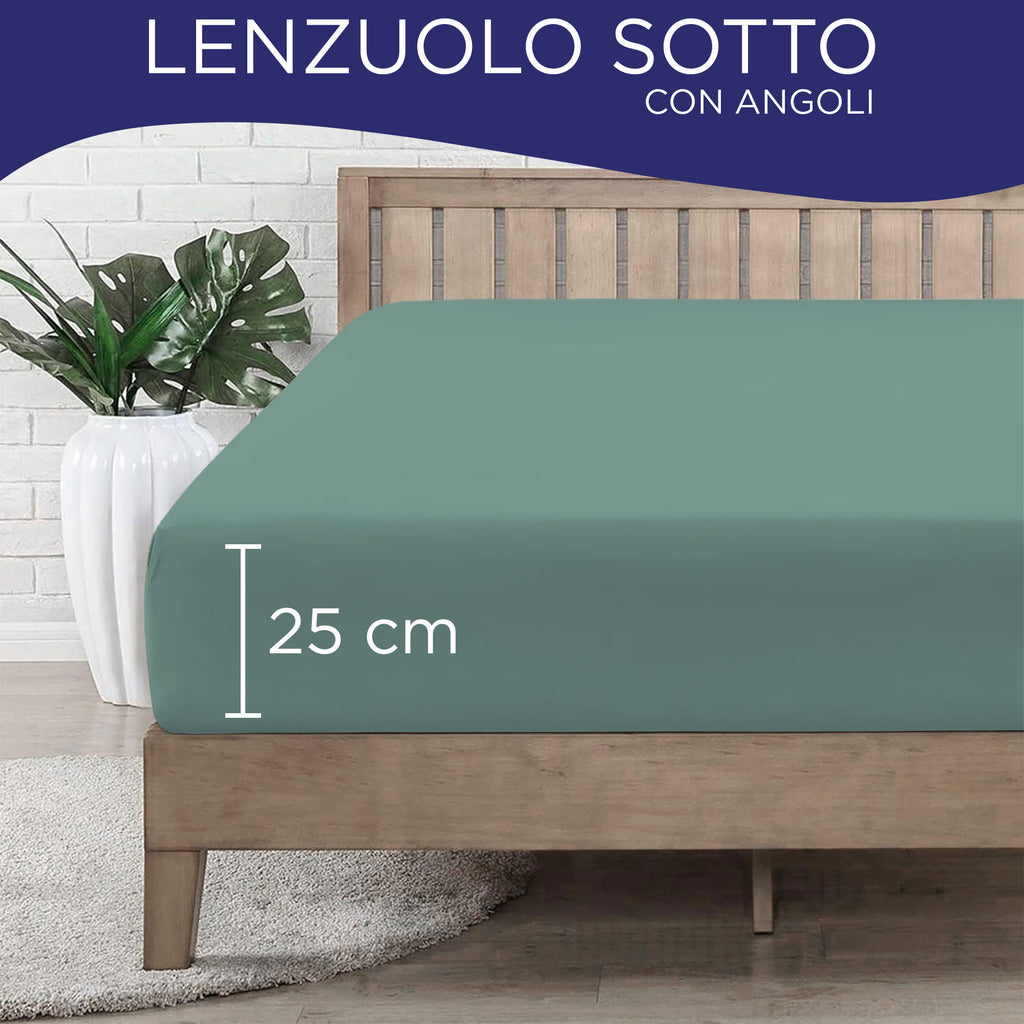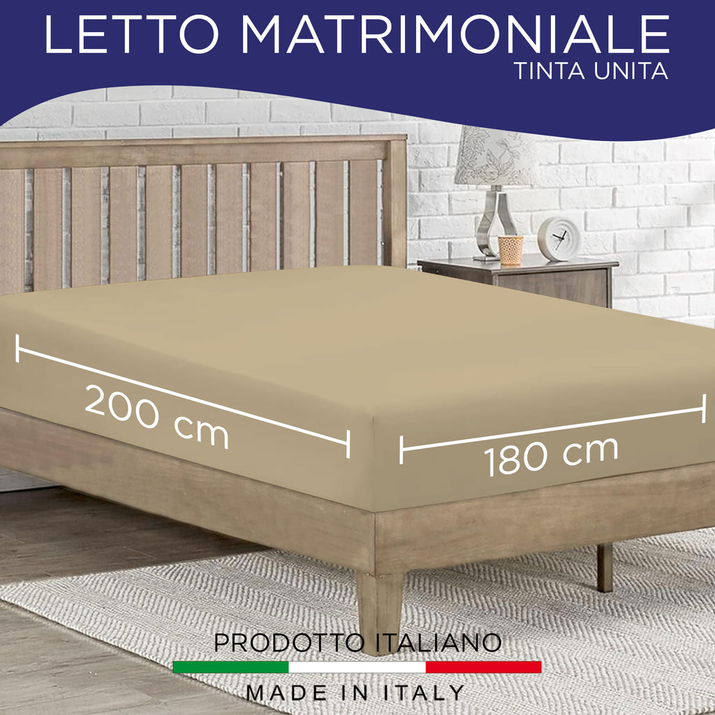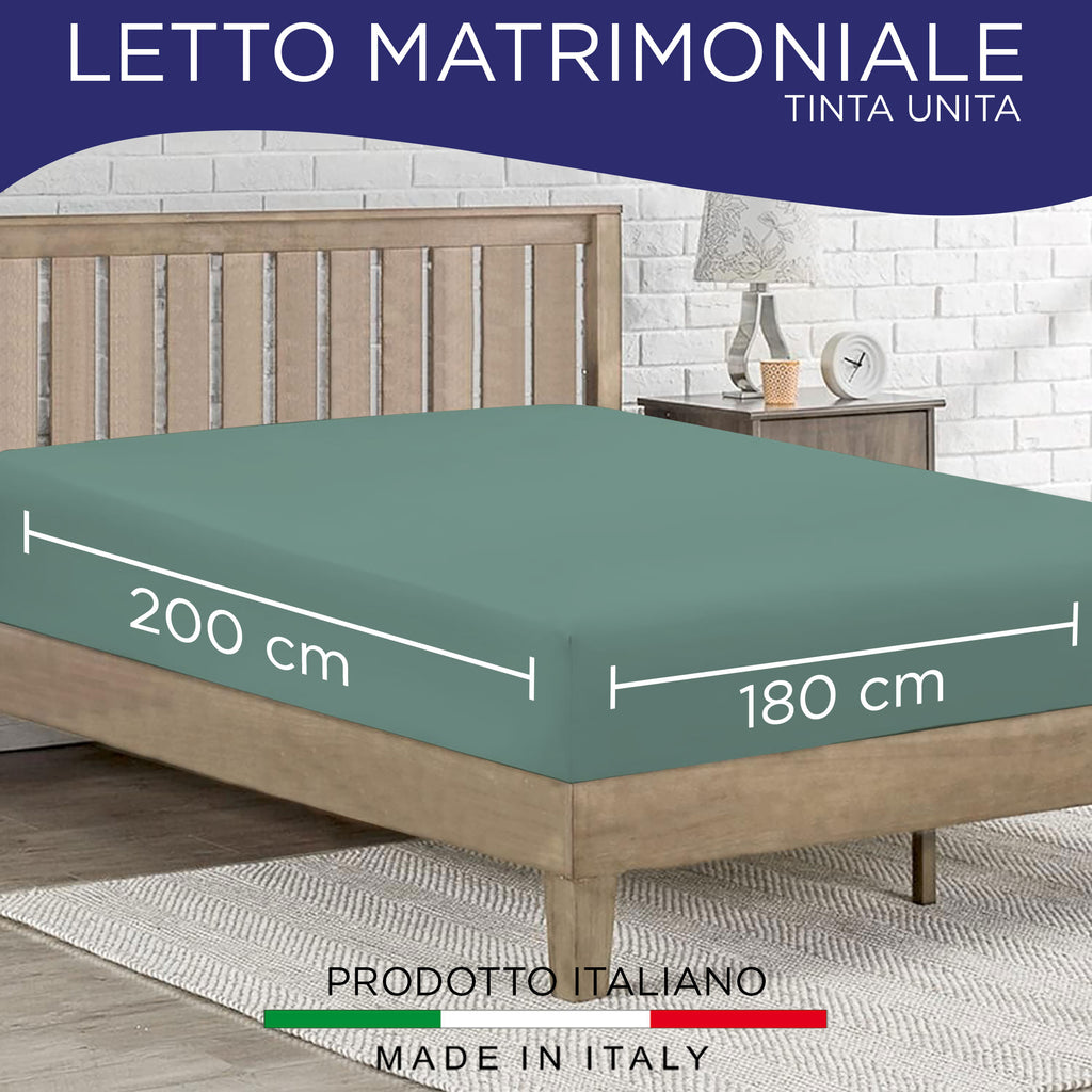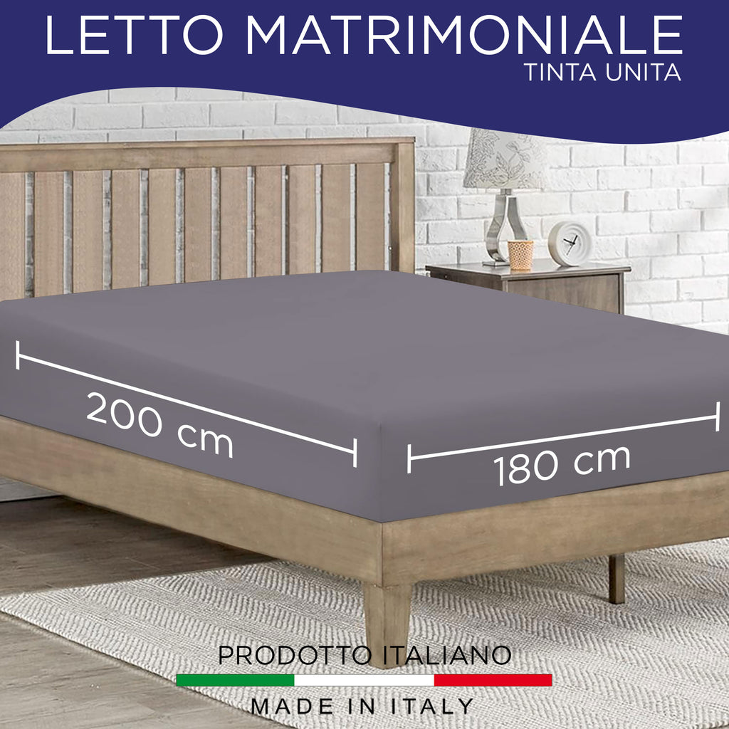Dona un tocco di comfort e stile al tuo letto matrimoniale con il nostro lenzuolo sotto con angoli in tinta unita, pensato per garantirti un riposo di qualità. Questo lenzuolo misura 180x200cm con un'altezza di 25cm, dimensioni perfette per adattarsi a materassi di diverse altezze. Realizzato interamente in Italia, è il risultato di una lavorazione accurata che assicura resistenza e lunga durata.