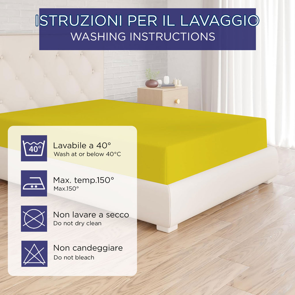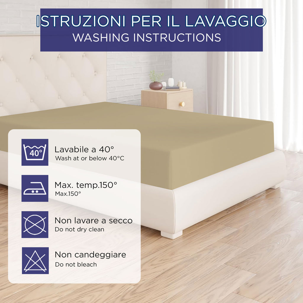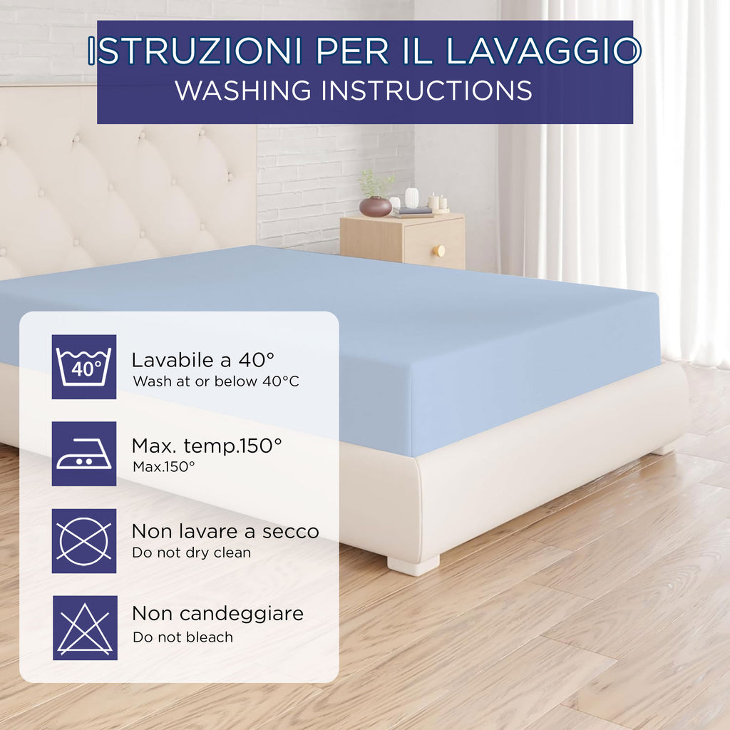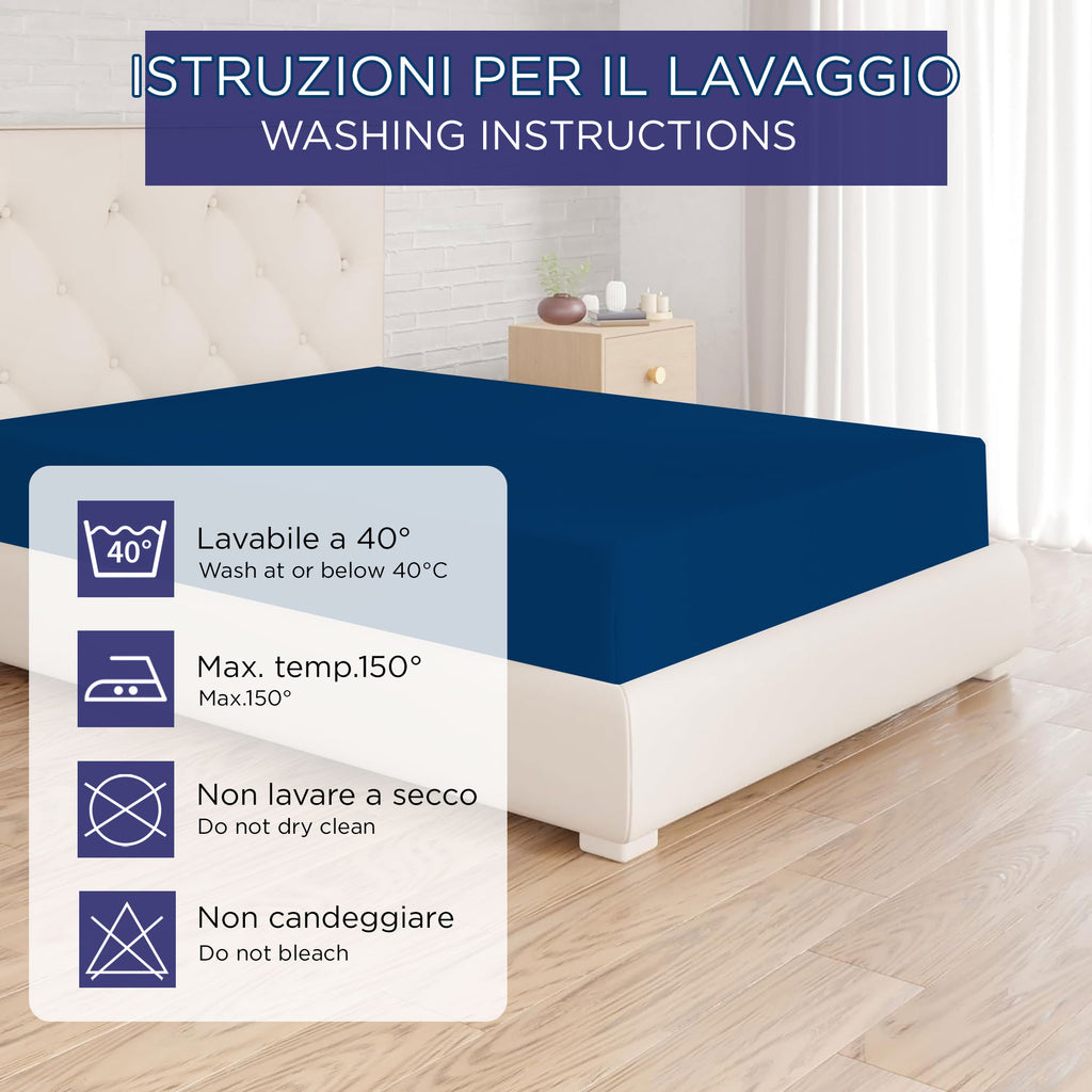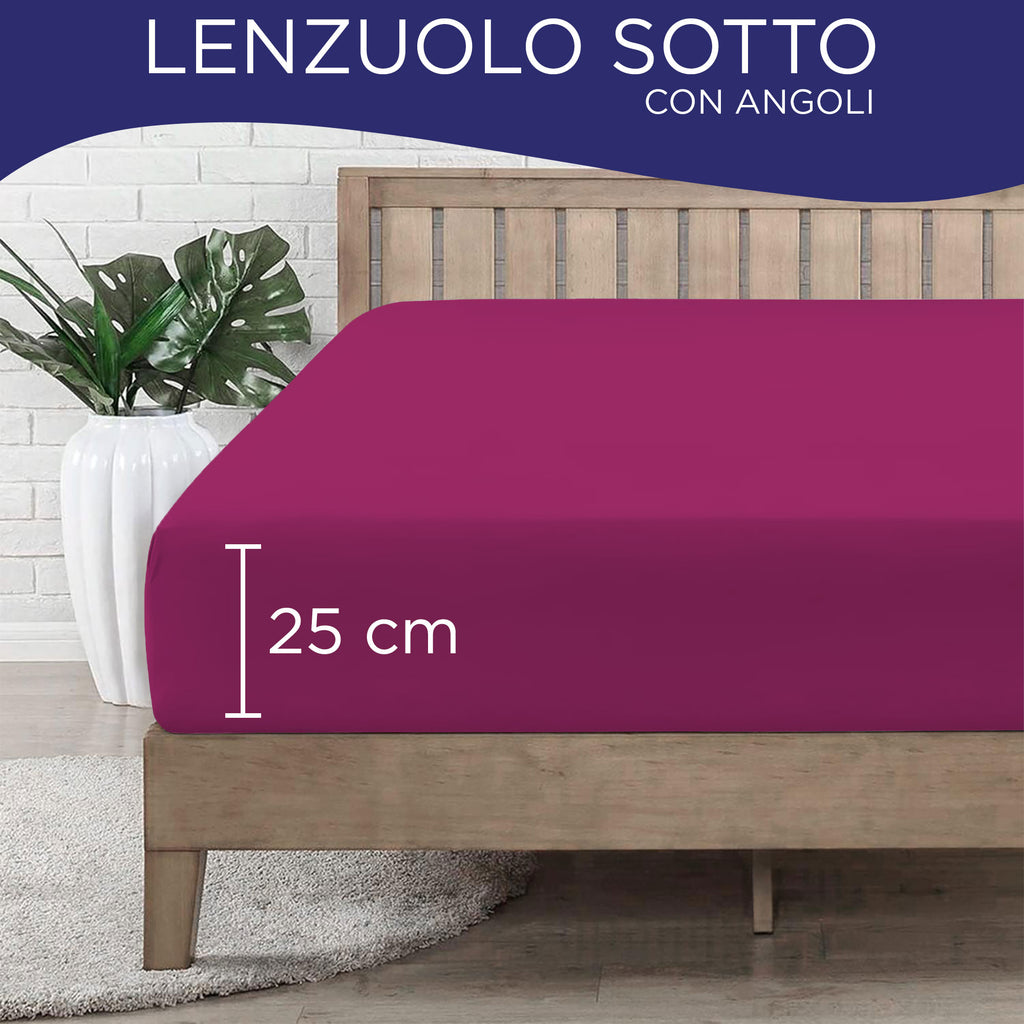 Dona un tocco di comfort e stile al tuo letto matrimoniale con il nostro lenzuolo sotto con angoli in tinta unita, pensato per garantirti un riposo di qualità. Questo lenzuolo misura 180x200cm con un'altezza di 25cm, dimensioni perfette per adattarsi a materassi di diverse altezze. Realizzato interamente in Italia, è il risultato di una lavorazione accurata che assicura resistenza e lunga durata.
