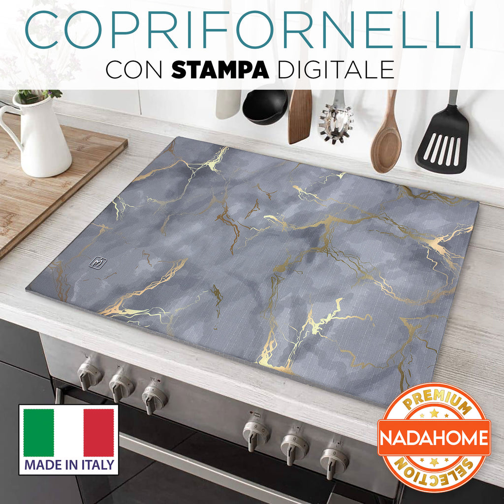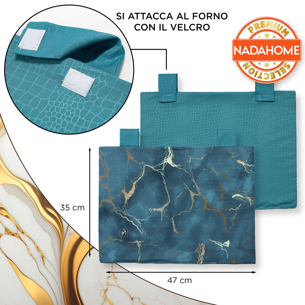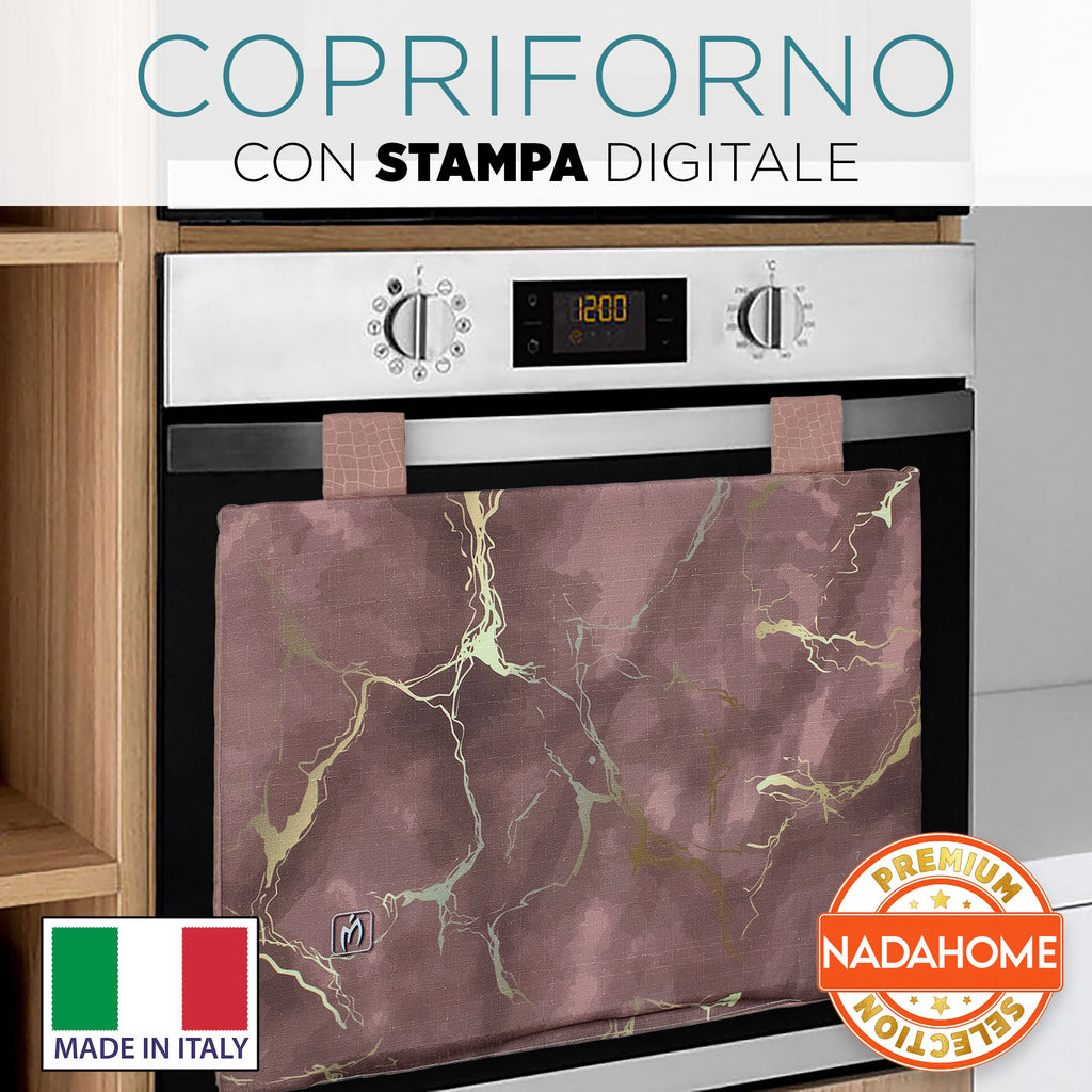 Dona un tocco di eleganza alla tua cucina con il set copriforno e coprifornelli imbottito effetto marmo. La stampa digitale marmorizzata con venature oro crea un look raffinato e moderno, trasformando il tuo piano cottura e forno in un vero elemento d’arredo.